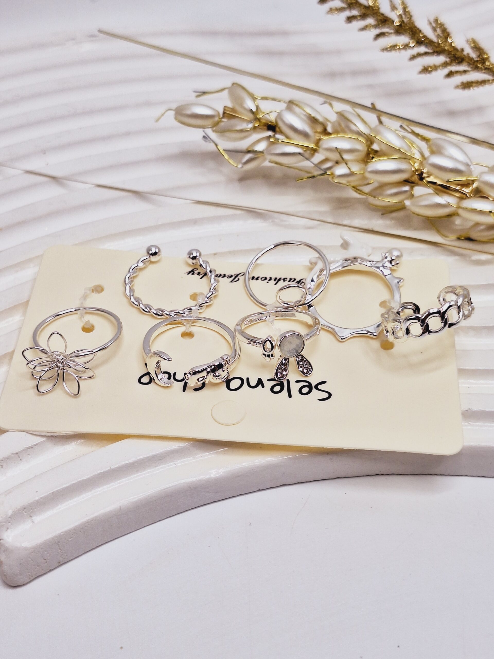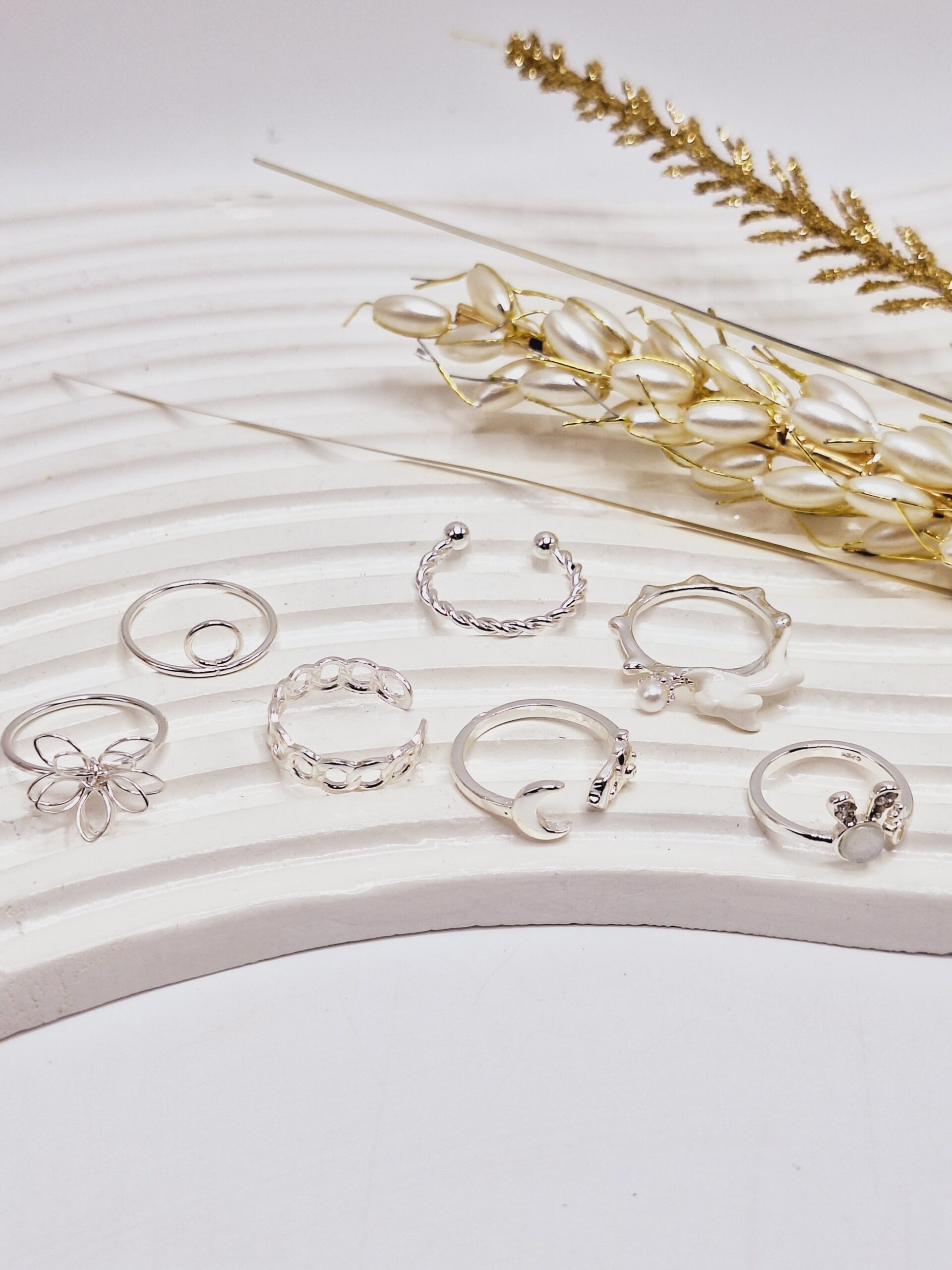 این پک شامل انگشترهای متنوع با طراحی‌های متفاوت است که با آبکاری رادیوم، دوام و کیفیت بالایی دارد و مناسب استفاده روزانه و مجالس می‌باشد ✨