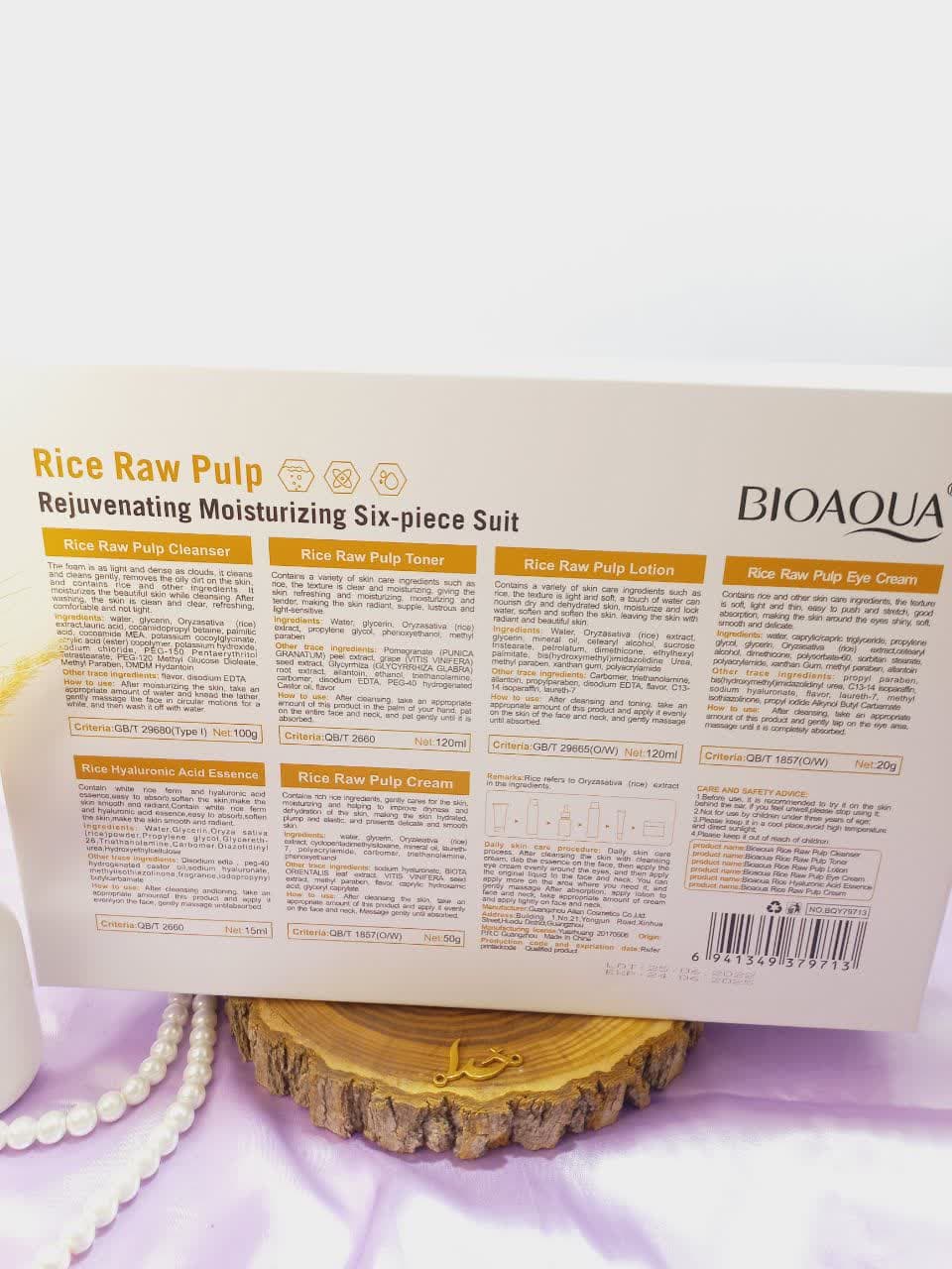 پک 6 تیکه جوانساز برنج بیواکوا شامل 6 آیتم روتین جوانساز و ترمیم کننده عالی که شامل یک شوینده جهت شست و شوی روزانه، تونر جهت پاکسازی منافذ، یک سرم جهت تغذیه و آبرسانی، لوشن برای رطوبت رسانی در طول روز، یک کرم شب مغذی و مرطوب کننده است.