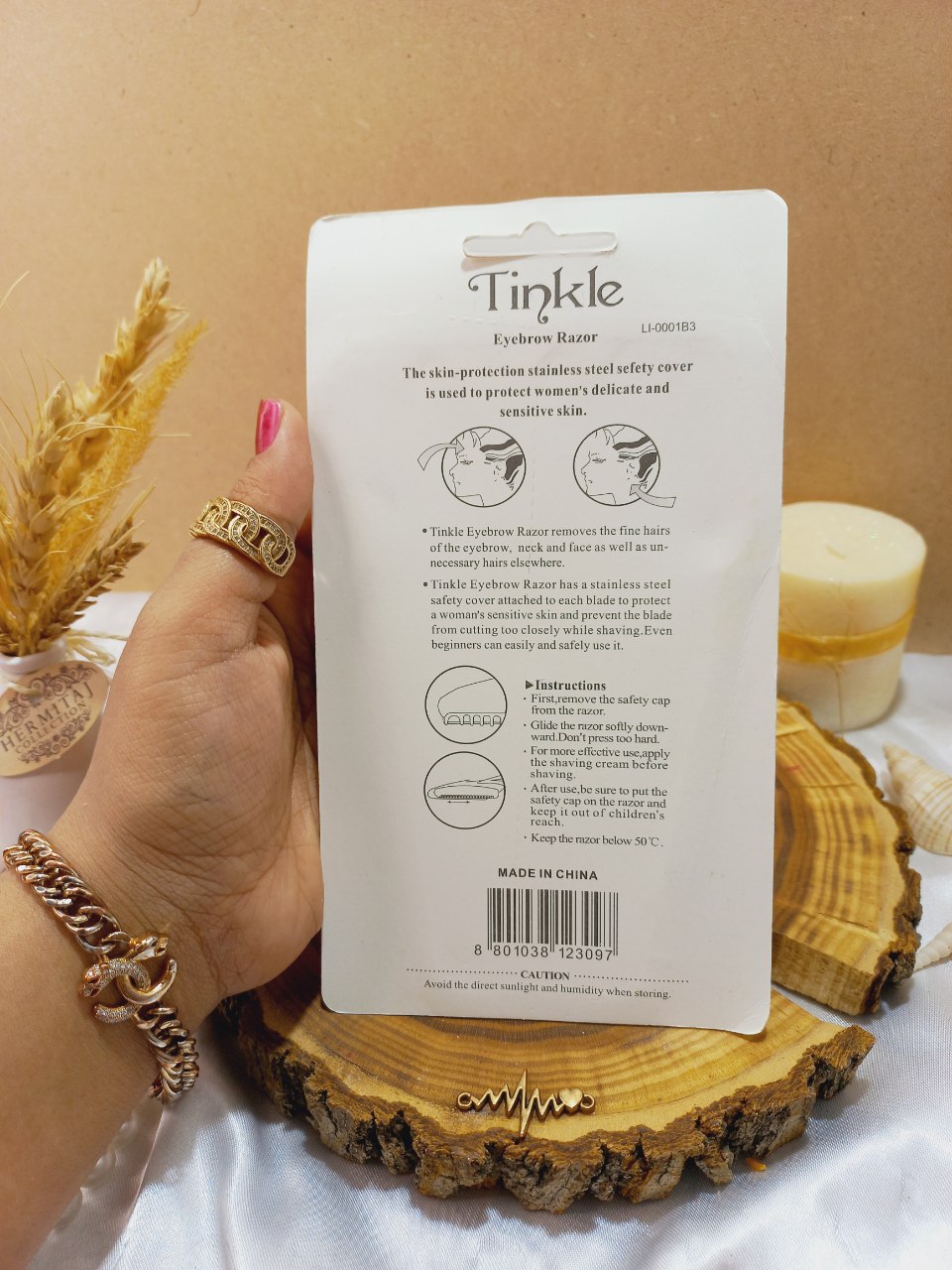 تیغ ابروی تینک از جنس استیل ضد زنگ تولیدشده است و دارای محافظ های ایمنی جهت جلوگیری از آسیب به پوست میباشد.