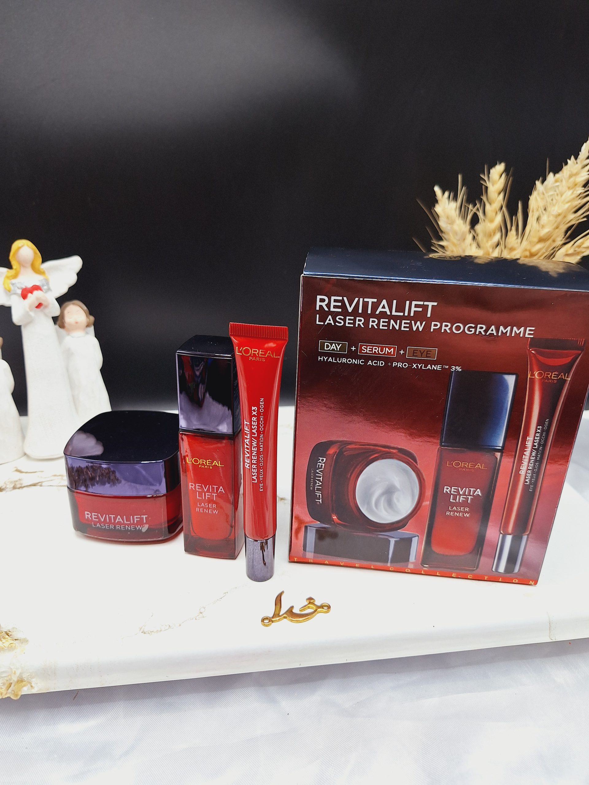 پک جوانساز لیفت کننده و ضد چروک 3تایی لورآل LORÉAL اصلی کد 10469 شامل سرم شب، کرم روز و کرم دور چشم میباشد. این ست برای مراقبت کامل 24 ساعته از پوست صورت برای بانوانی است که به مرور با بالارفتن سن دچار چین و چروک، کم آبی، خستگی و.. در صورت و اطراف چشم میشوند. با استفاده از این پکیج سه عددی داشتن پوستی جوان را تجربه خواهید کرد.