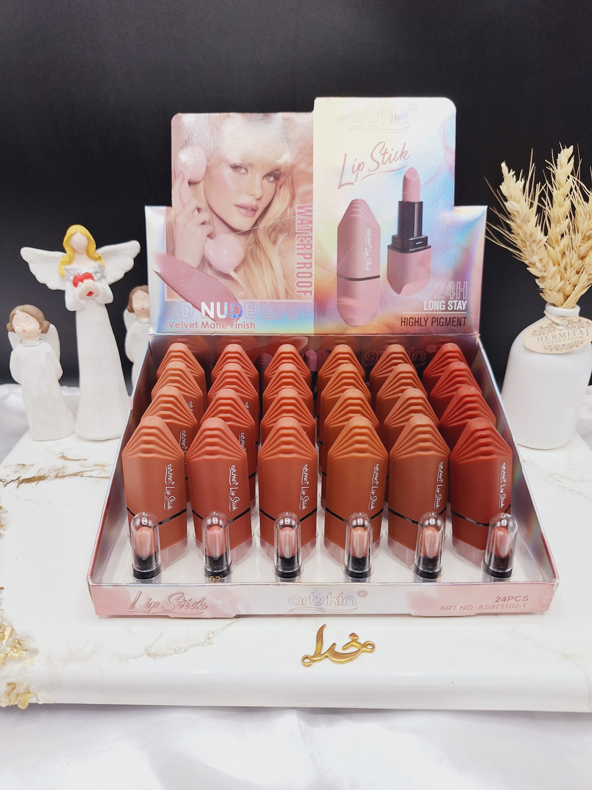 استفاده از رژلب می تواند تاثیر بسیار زیادی در زیبایی ظاهر و آرایش شما داشته و گرما و جذابیت بی نظیری به آرایش شما می بخشد. استفاده مداوم از رژلب های تهیه شده از مواد نامرغوب و شیمیایی می تواند آسیب بسیار شدیدی به پوست لب شما رسانده و سلامت پوست شما را به خطر بیاندازد. بدین منظور باید در انتخاب محصولات آرایشی دقت کافی را داشته باشید. رژلب های فاقد سرب و یا با درصد پایین مواد شیمیایی می تواند تا حد امکان سلامت و زیبایی پوست شما را تضمین نمایند. برند آرت اسکین از جمله برندهای آرایشی می باشد که محصولات خود را بر پایه مواد گیاهی تولید و به بازار عرضه داشته و با کیفیت بالا و تنوع در محصولات به سرعت توانسته محبوبیت بسیاری برای محصولات خود کسب نماید. از پرطرفدارترین محصولات برند آرت اسکین رژلب های جامد می باشد. پک رژ جامد ضد آب 6 تایی آرت اسکین artskin کد AS971102_1 محصولی منحصر به فرد با ماندگاری بالا و پوششی مات جهت ایجاد نمایی مات و با دوام بر روی لب ها می باشد. این رژ دارای فرمولاسیون مغذی می باشد که با تنظیم رطوبت و آبرسانی به پوست لب موجب جلوگیری از خشکی و ایجاد ترک بر روی لب می گردد. رژ لب جامد آرت اسکین در کنار ایجاد نمایی مات و ماندگار بر روی لب ها از پوست لب شما محافظت نموده و آن را در مقابل رادیکال های آزاد در محیط محافظت می نماید. بافت این رژلب بسیار سبک بوده و هیچ گونه سنگینی بر روی لب های شما بهمراه نخواهد داشت.