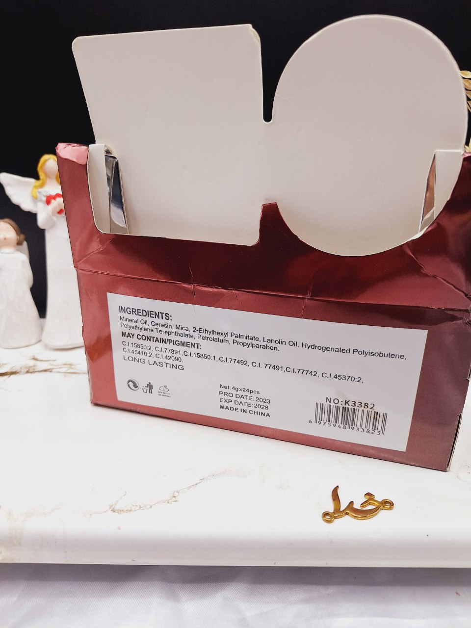 پک رژ لب جامد مات 6 عددی شاین دار میس بتی Miss Betty کد K 3382 دارای رنگ های بسیار متنوع و پرکاربرد است. که دارای ماندگاری 24 ساعته می باشد و مناسب برای مهمانی های طولانی مدت است که بدون تغییر باقی می ماند. پک رژ لب جامد مات 6 عددی شاین دار میس بتی Miss Betty کد K 3382 از کیفیت بالایی برخوردار است به نحوی که بر روی لب پوسته پوسته نمی شود و لب ها را دچار خشکی نمی کند. زیرا حاوی مواد مرطوب کننده است که مانع ازخشکی پوست لب می شود.