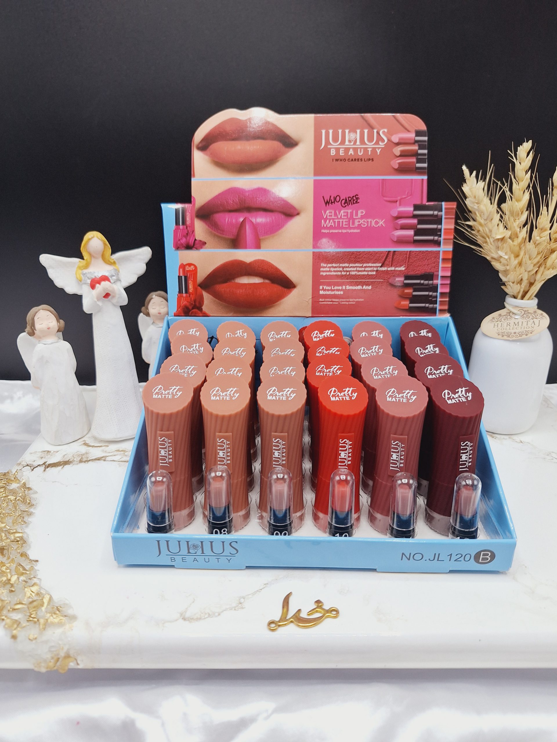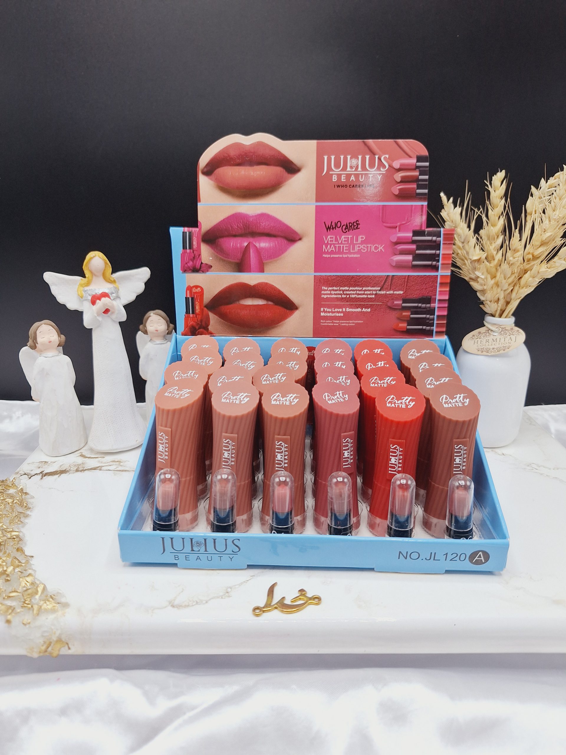 پک رژ لب جامد 6 عددی برند جولیوس JULIUS کد JL 120 A دارای رنگ هایی شاد و جذابیس که هر سن و سلیقه ای آن را میپسندد.