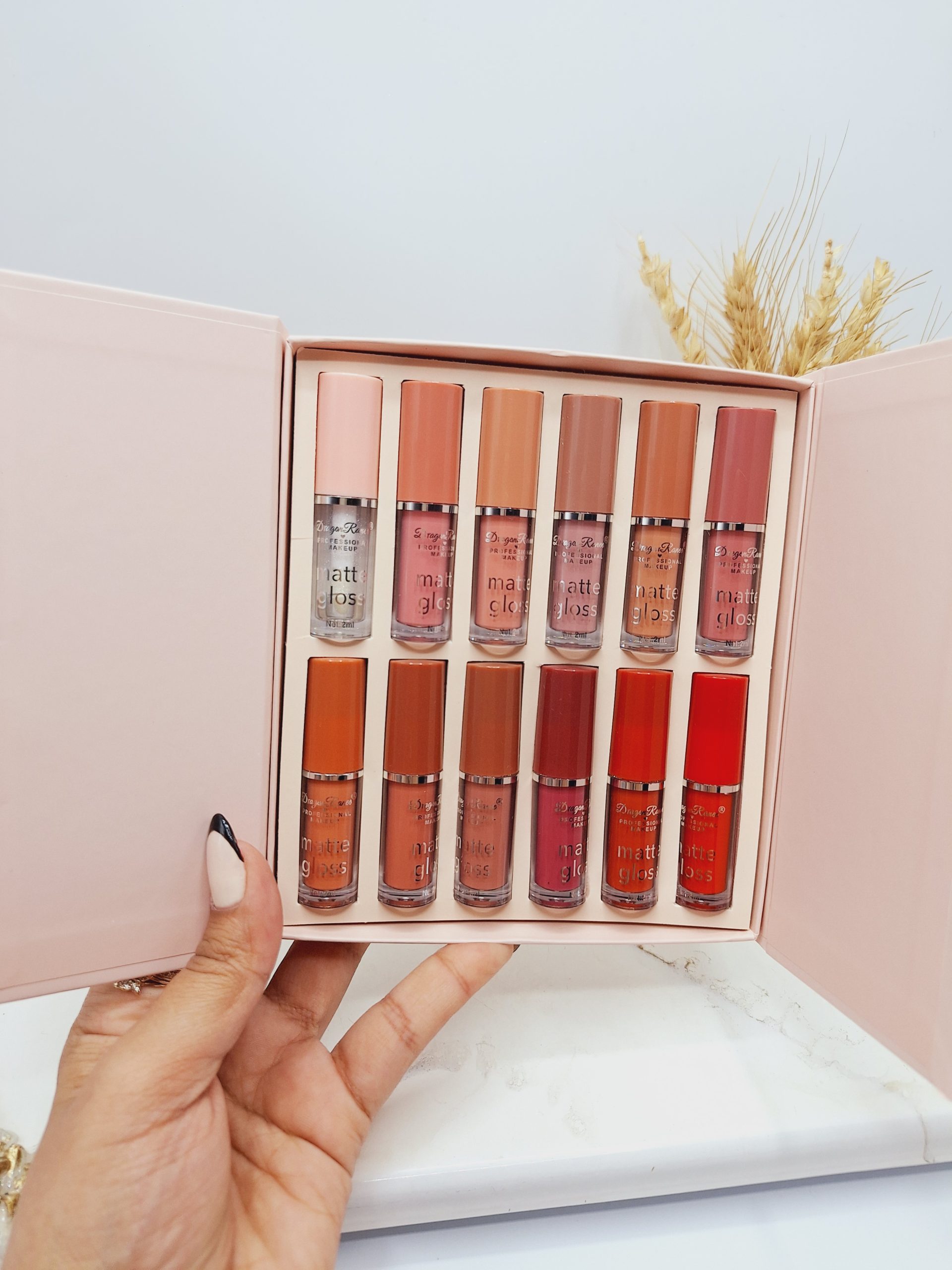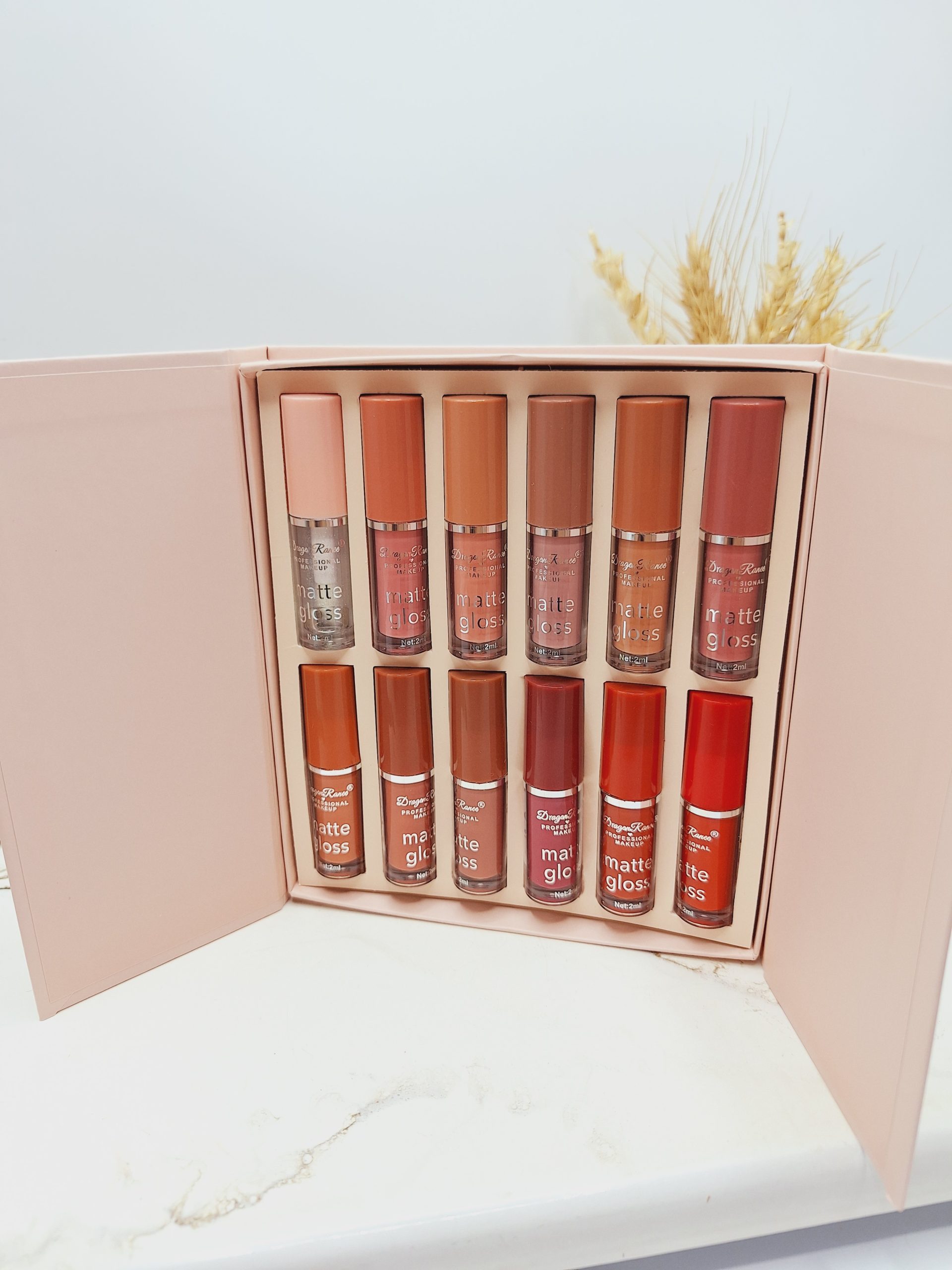 پک 12 عددی رژ لب مایع دراگون رانی Dragon Ranee هر پک حاوی 12 رنگ عالی و کاربردی ، مات و مخملی روی لب و بدون چسبندگی روی لب و بدون پوسته شدن روی لب با پیگمنت عالی می باشد.