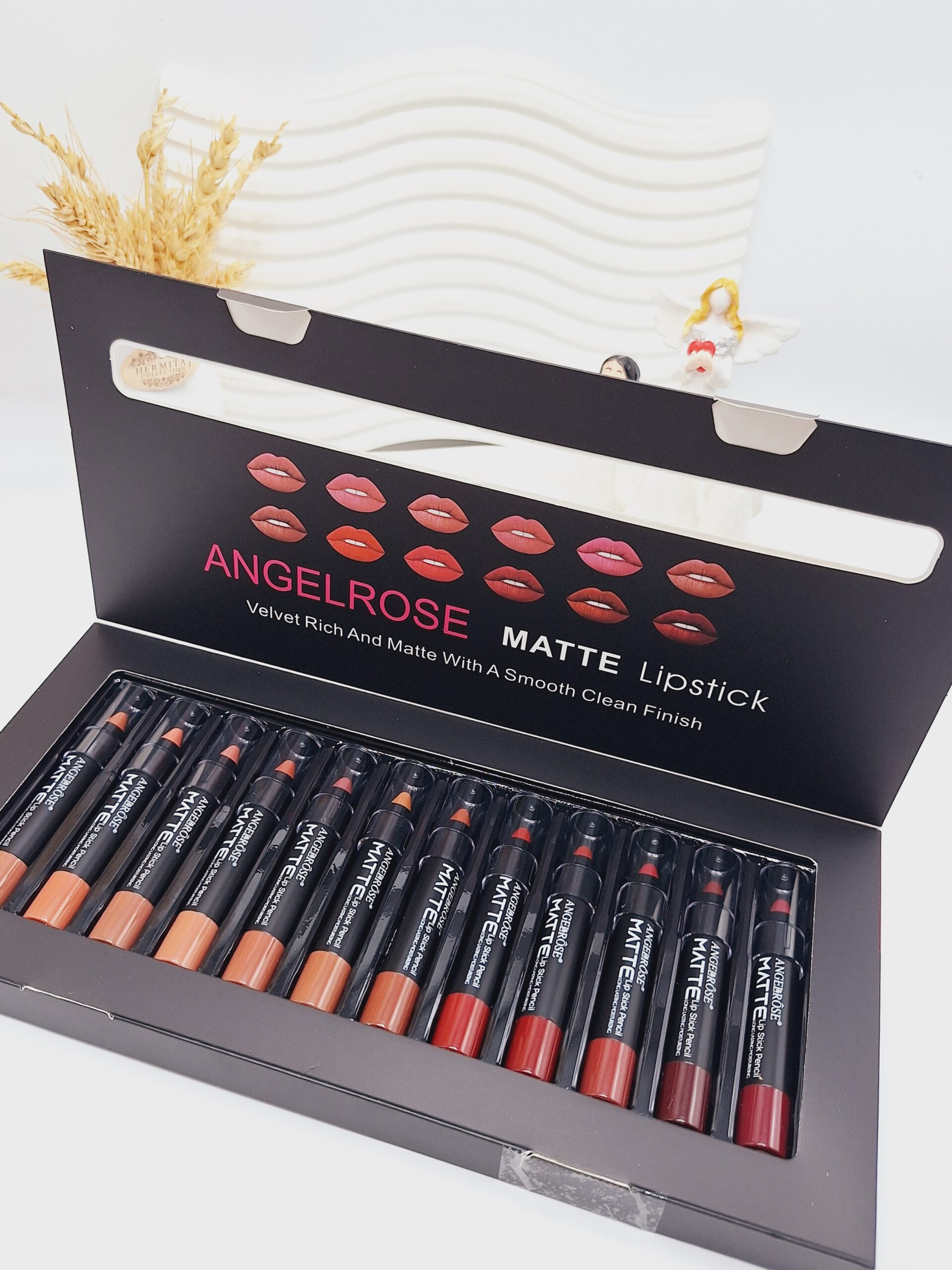 اگر به دنبال پک رژ لب پیچی با رنگهای متنوع و بافت مات هستید، پک ۱۲تایی پیچی مات برند ANGELROSE کد 0817 انتخابی عالی برای شماست 💄✨