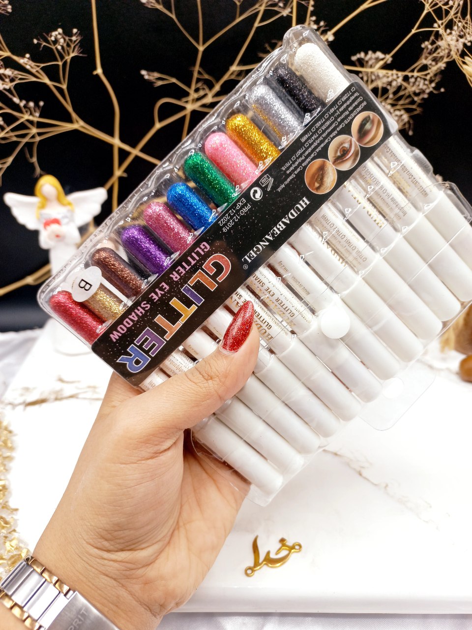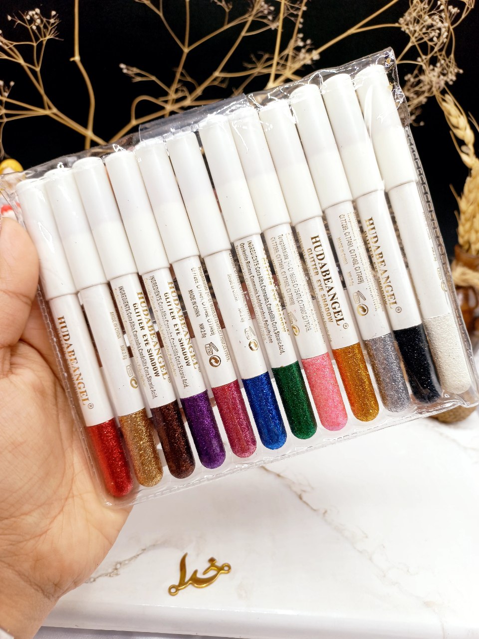 پک مداد سایه چشم ۱۲ عددی گلیتری برند هدی بانجل HUDABEANGEL پوکه سفید 12 رنگ زیبا و پر کاربرد تولید و روانه بازار شده است. این برند چندین تناژ رنگ زیبا را در یک پک برای شما جمع کرده که متناسب با سلیقه و استایل خود از آنها استفاده کنید. با وجود این 12 رنگ کلکسیون رژ لبهای شما تکمیل میشود. از ویژگیهای این رژ لبها باید گفت که ضد آب هستند، پس خیالتان راحت به راحتی پاک نمیشوند. از این مدادها هم میتوانید به عنوان خط لب و هم رژ لب استفاده کنید پس با یک تیر دو نشون میزنید. ناگفته نماند که این مداد اصلا حساسیتزا نیست و همه افراد میتوانند از آن استفاده کنند. پوششدهی این رژ لبها بالا بوده پس لبهای شما را به زیبایی صاف و یکدست میکند.