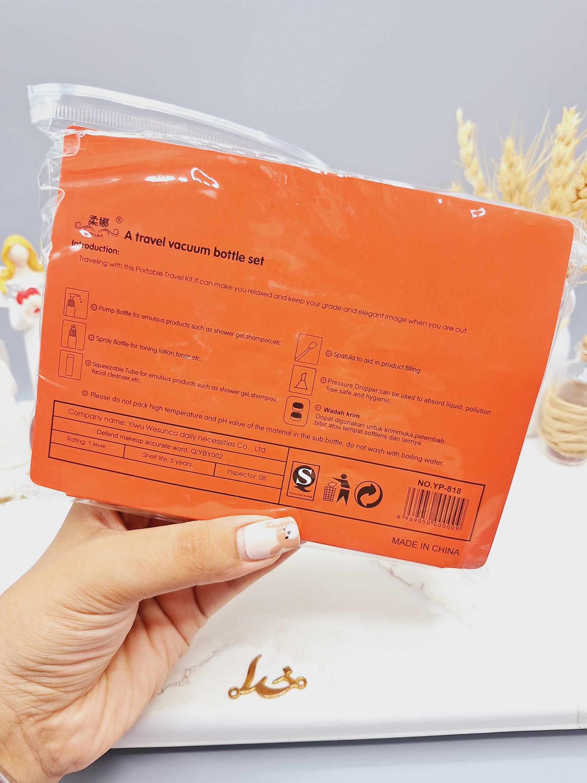 • شامل دو عدد بطری ، یک عدد بطری پمپی، یک عدد اسپری، دو ظرف کرم 10 گرمی، قاشقک و قیف و کاور زیپی