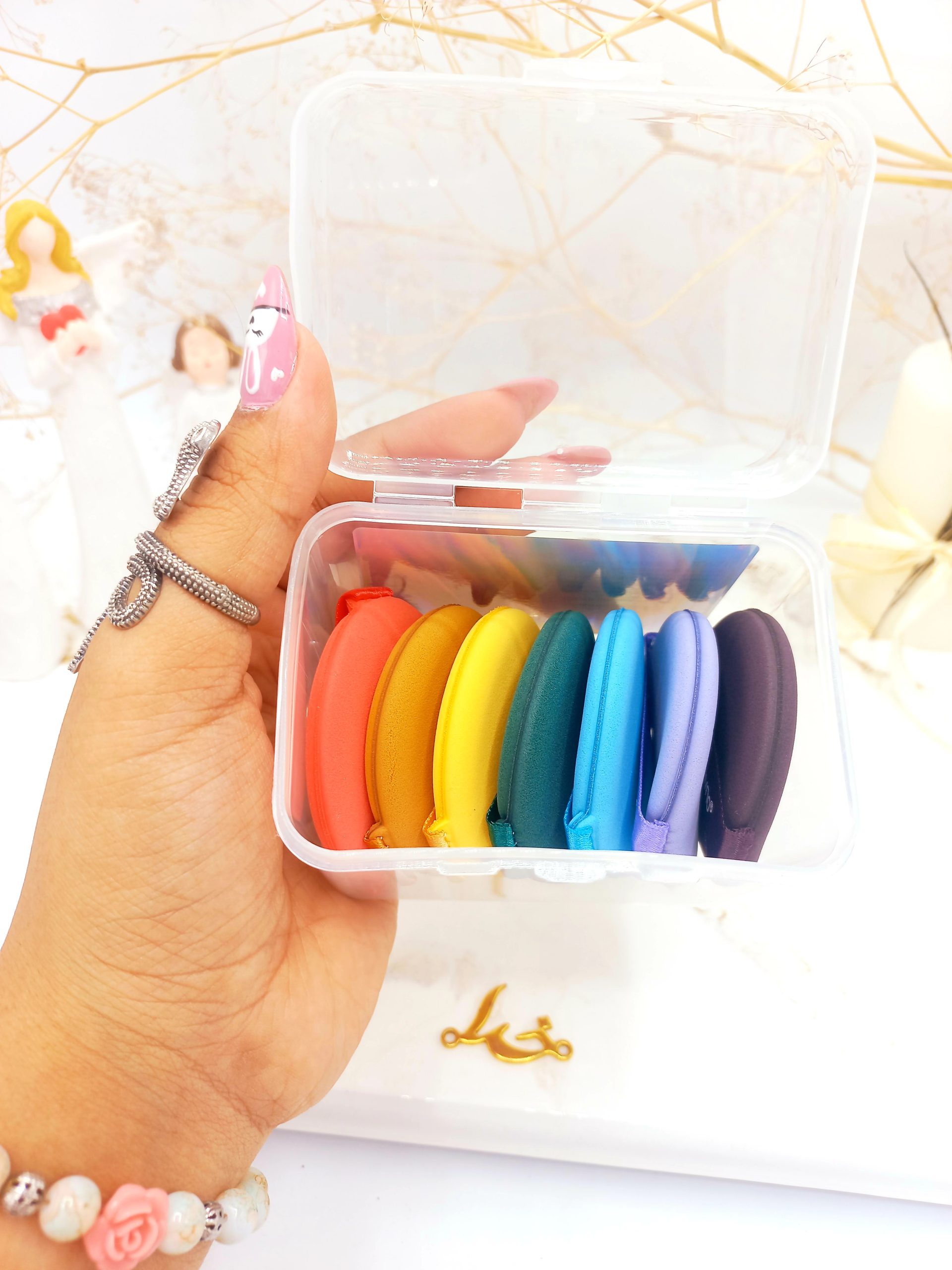 باکس پد پنکک رنگی 7 تایی از هدر رفتن کرم پودر جلوگیری میکنه چون کرم پودر رو به خودش جذب نمیکند