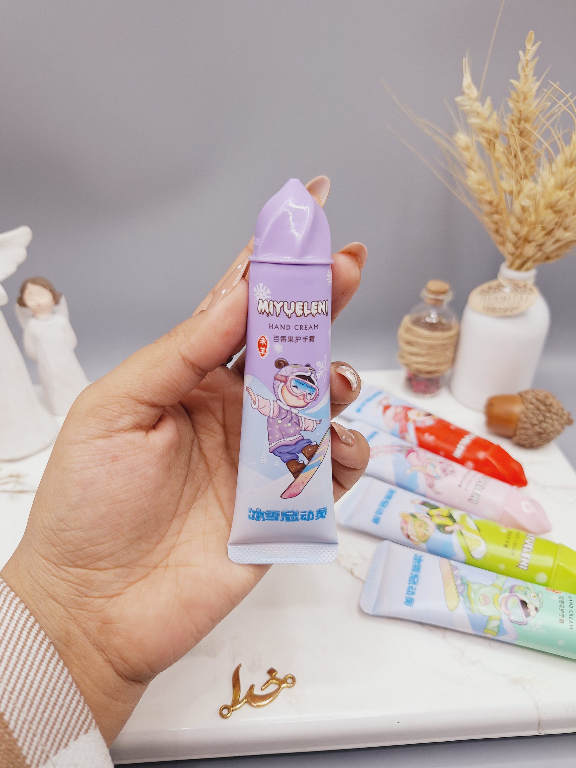 پک پنج عددی کرم دست مدل شکوفه طرح اسکیمو برند MIYUELENI کد 7166 برای مرطوب کردن، آبرسانی و نرم کردن دست تولید شده است که به شرح زیر است: پک پنج عددی کرم دست مدل شکوفه طرح اسکیمو برند MIYUELENI کد 7166 بافتی نرم و غیر چرب داشته و با انواع خواص و رایحه های مختلف پوست دست را نرم و شاداب نگه می‌دارد.