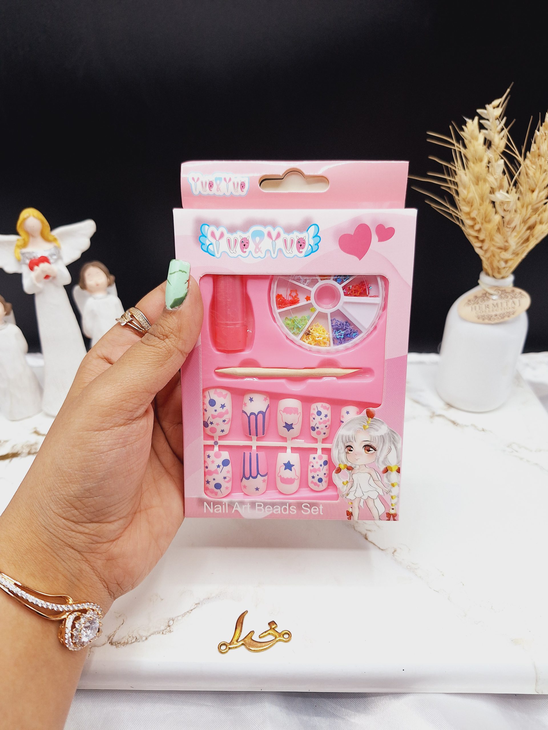 پک چسپ و ناخن مصنوعی به همراه رژ فشنگی بچگانه کد 331
