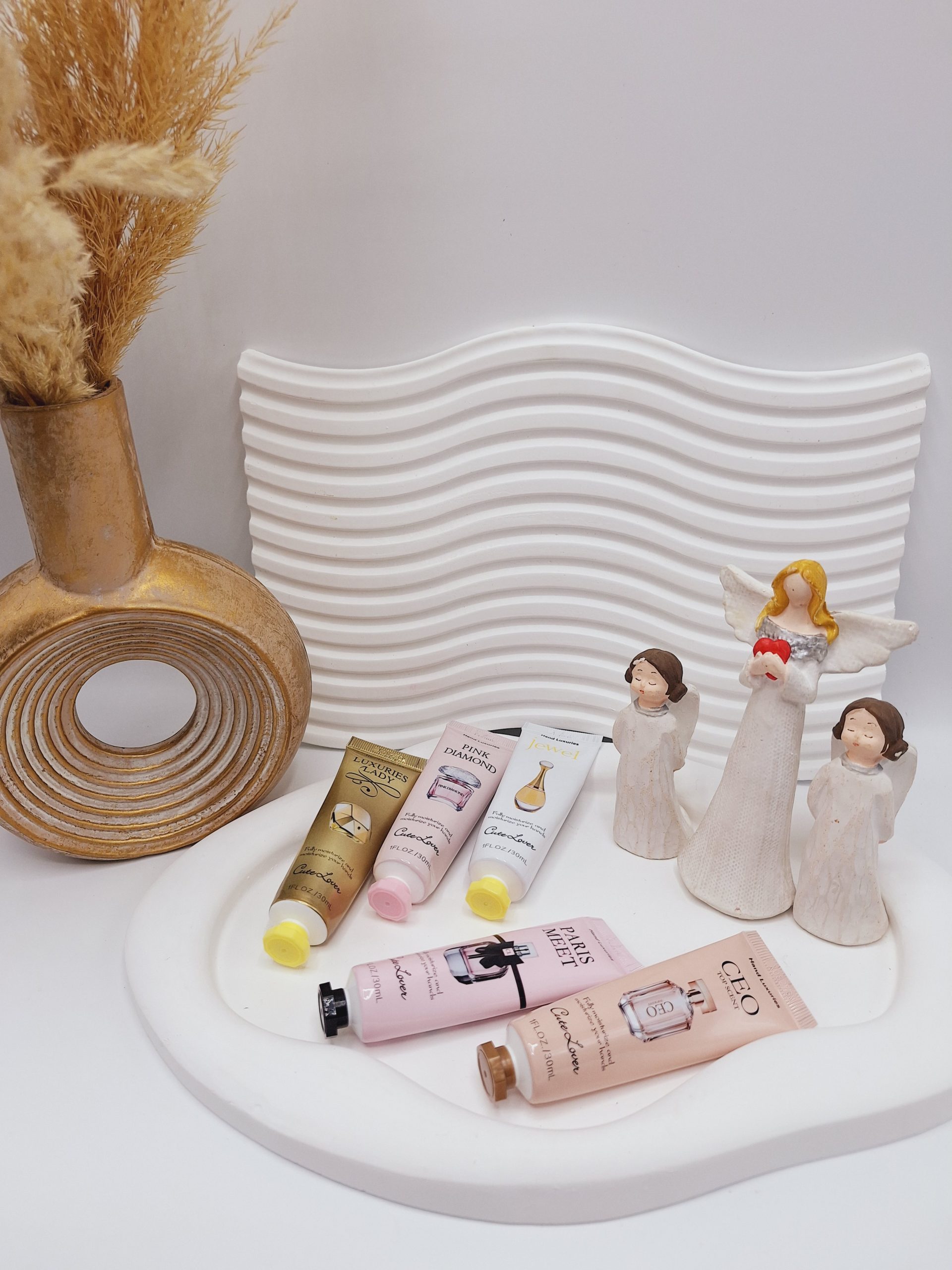 پکیج کرم دست ادکلنی شامل 5 عدد کرم دست با رایحه های ادکلن های معروف متفاوت دیگ از دست خسکی دست راحت شدین خوبیش اینه جاگیر نیس میتونید داخل کیفتون و داخل ماشینتون و روی میزتون هرکدوم‌ خواسین بزارین و هرجا دلتون خواس راحت ببرین کرم دست چند منظوره ی مغذی و روشن کننده ضد چروک و مرطوب کننده ، لطیف و نرم کننده،ضدخشکی و ترک، پرکننده بافت پوست دستها ترکیبات : چای سبز،گریپ فوروت،گل رز، توت وحشی، شی باتر،اسید میوه و آنتی اکسیدان سایز هر عدد 30 گرم جمعا 150 گرم انقضا 2024