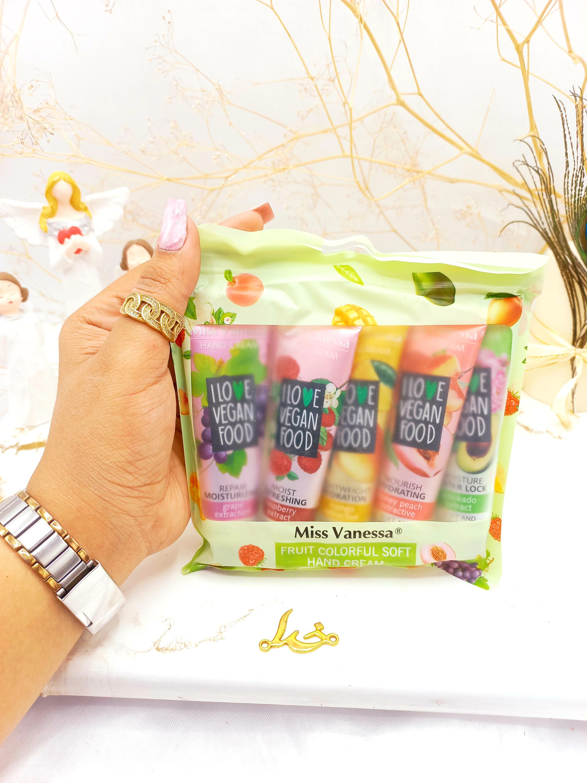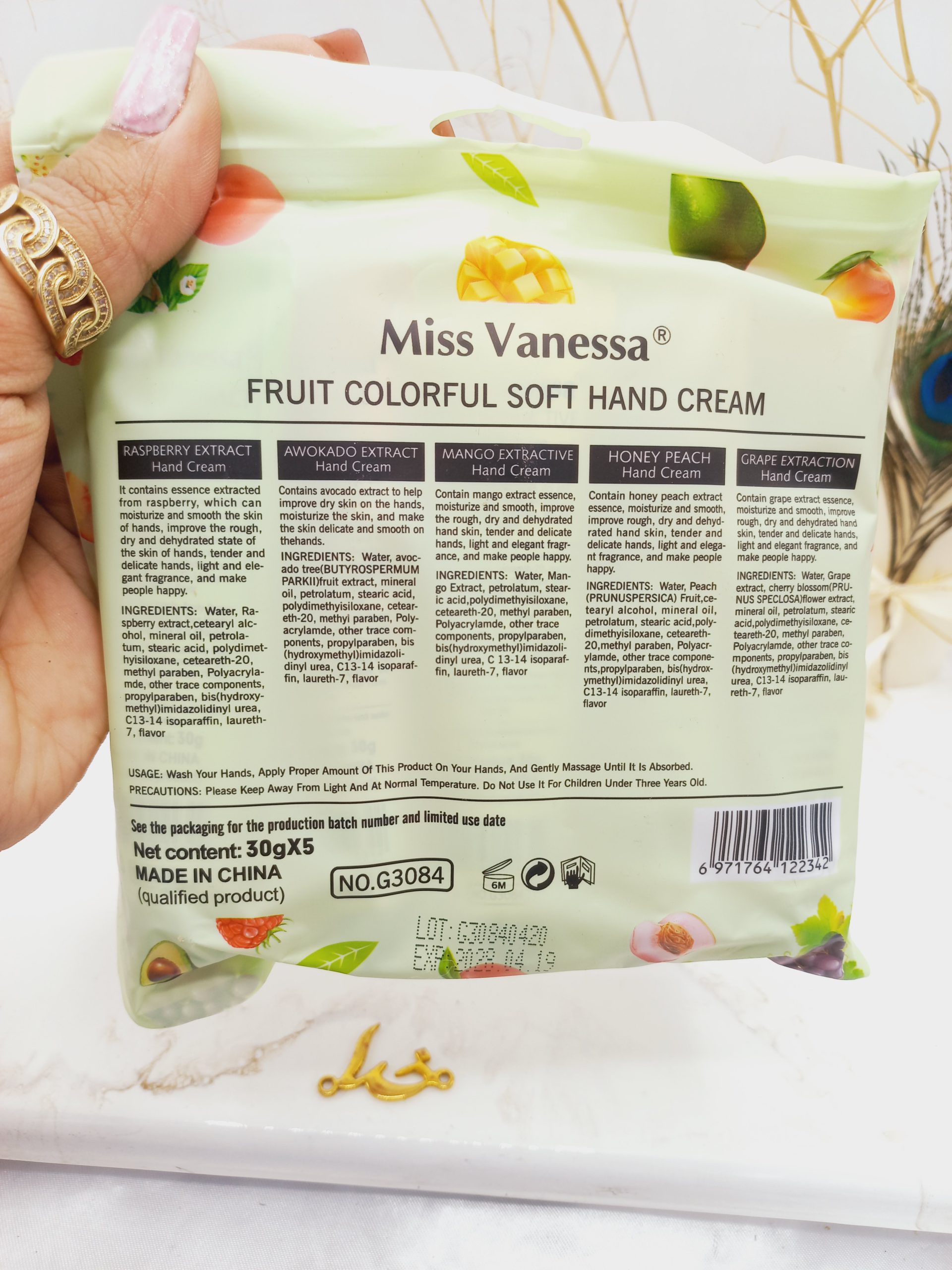 پک کرم دست 5 عددی میوه ای خوشبو Miss vanessa یکی از بهترین کرم های مرطوب کننده است که می تواند از پوست در برابر مشکلات خشکی محافظت کند