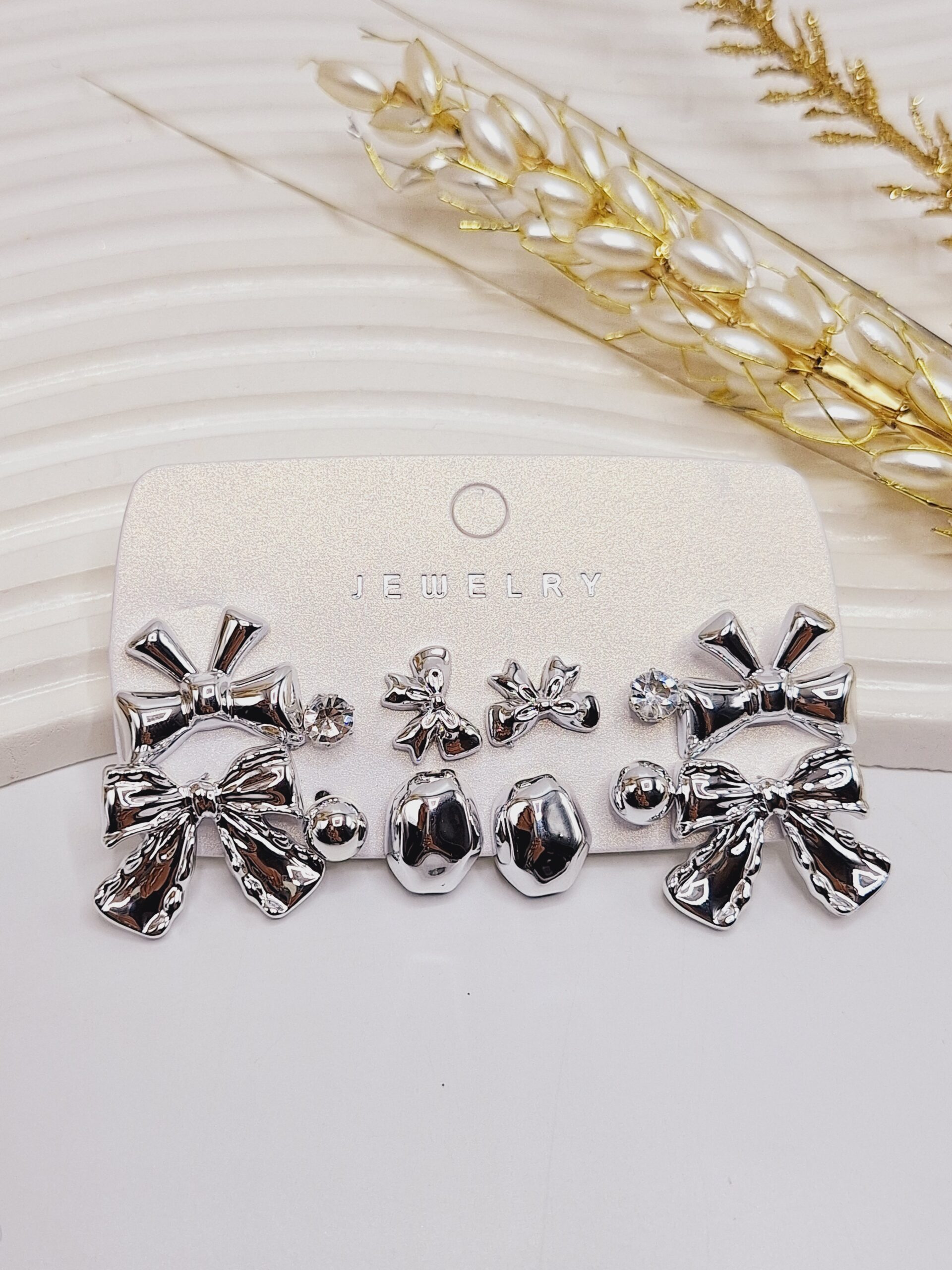 پک گوشواره ۶ تایی مجلسی آبکاری رادیوم (طرح چهارم)، ترکیبی از اصالت، درخشش و لطافت زنانه است 💎🌸