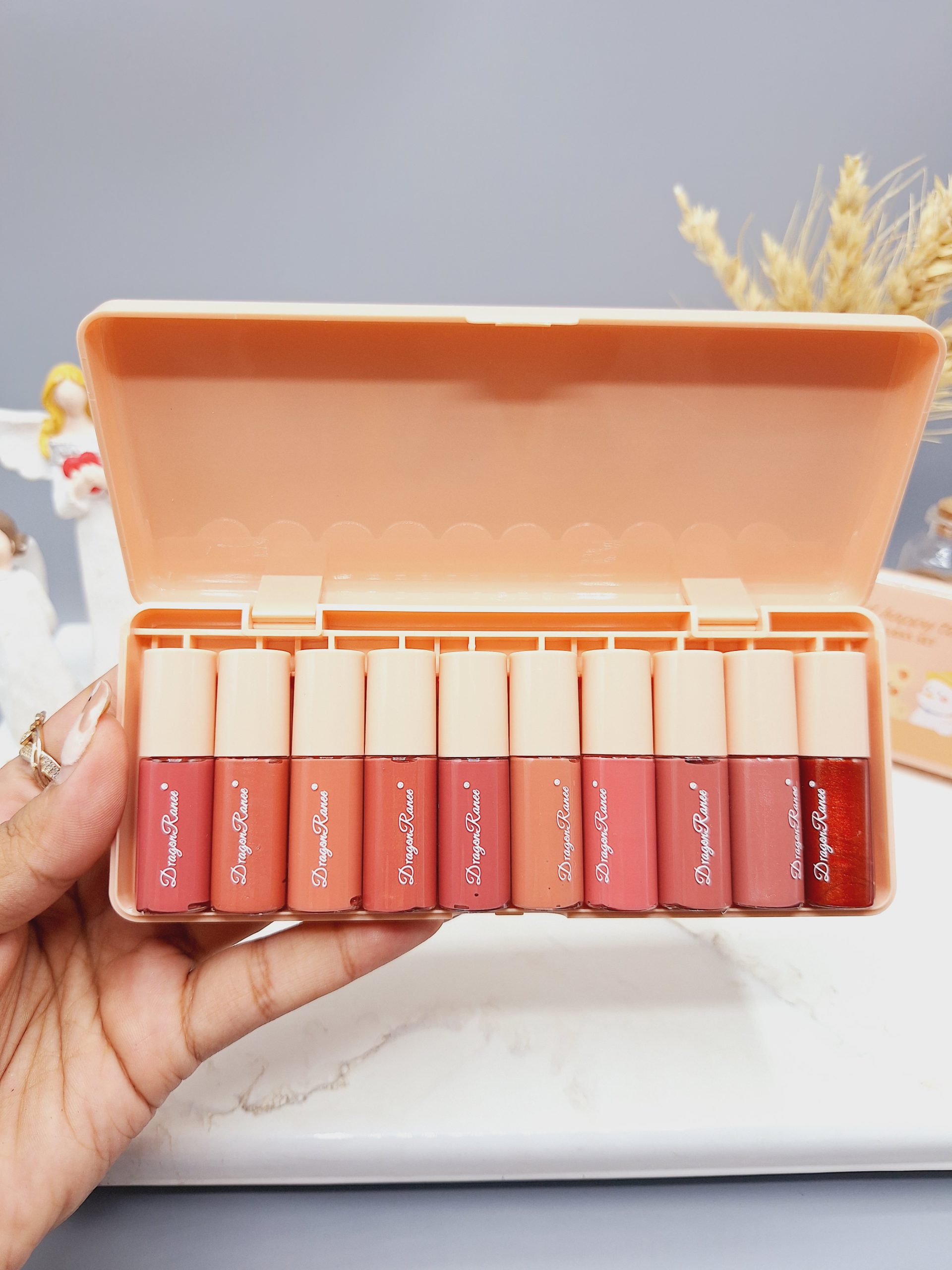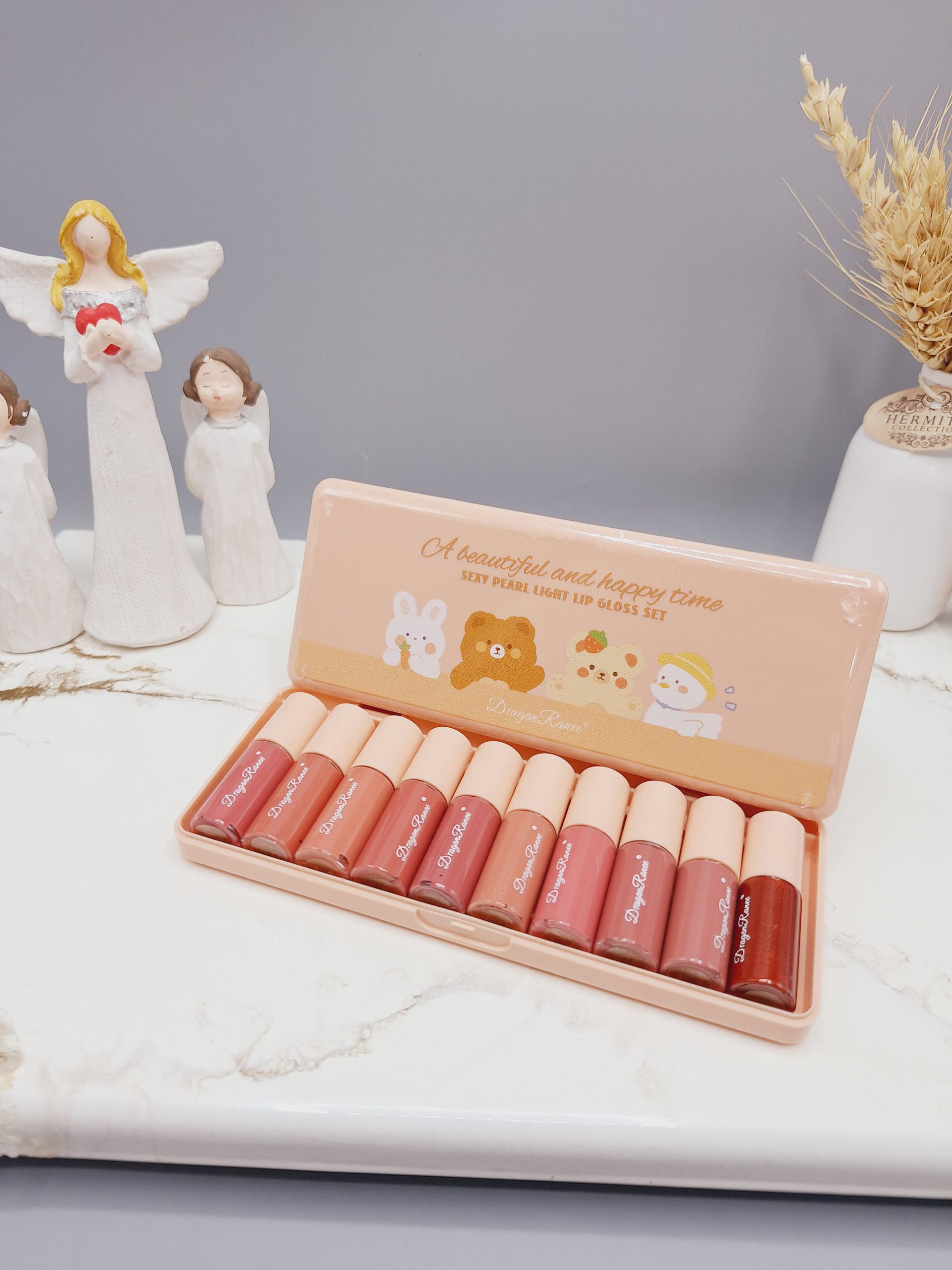 پک 10 تایی رژ مایع خوش رنگ طرح خرسی برند Dragon Rance کد RD86