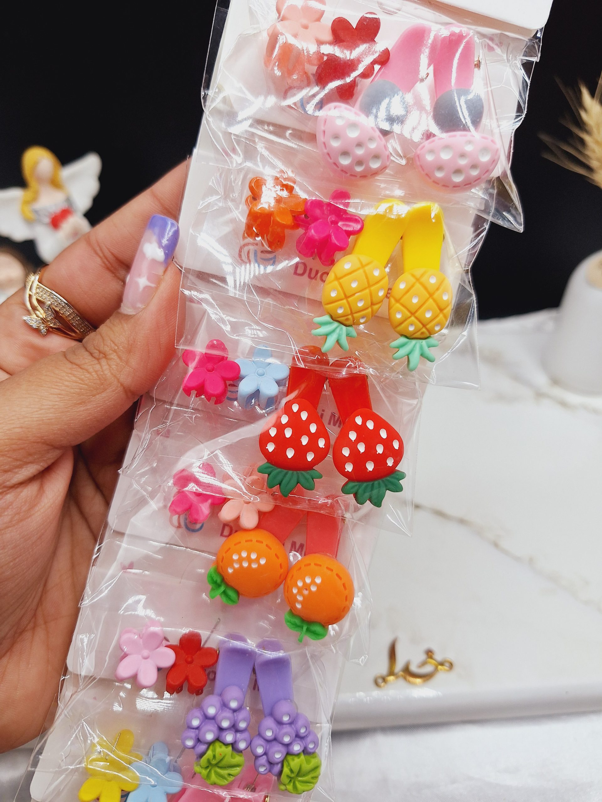 پک 10 عددی گیره مو دخترانه طرح گل و میوه