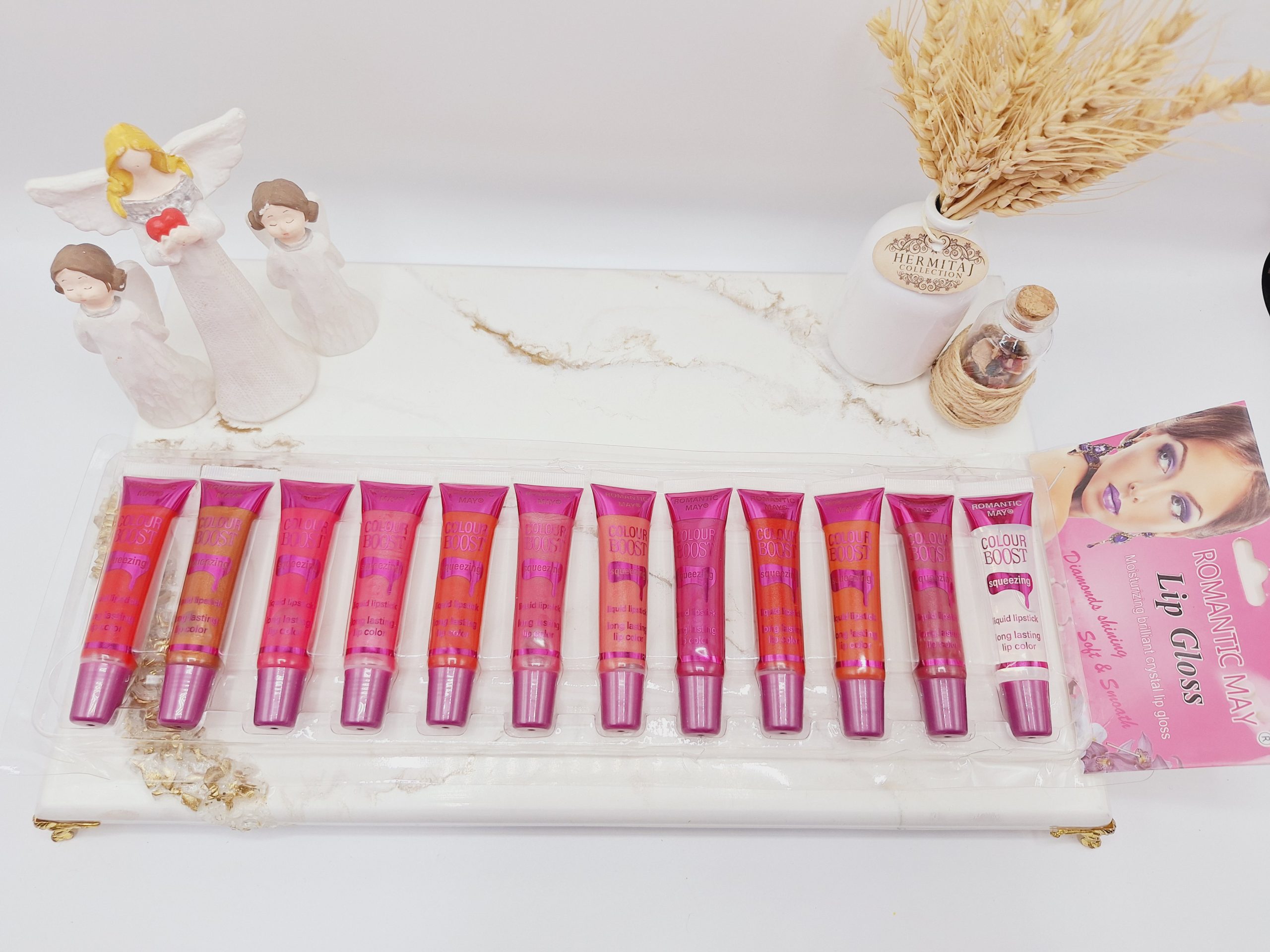 پک 12 تایی لیپ گلاس تیوپی برند رومانتیک مای ROMANTIC MAY کد 0013