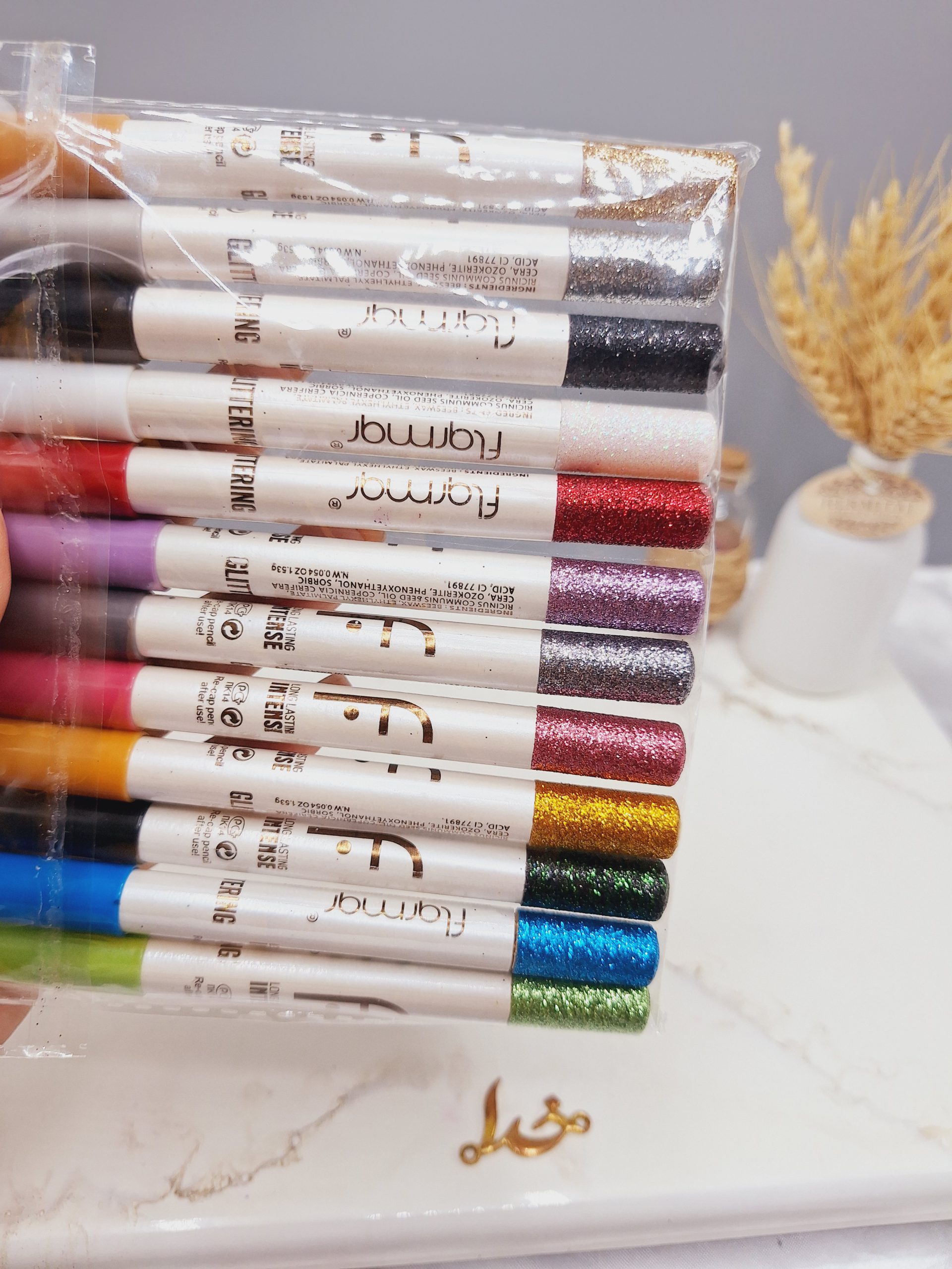 پک 12 تایی مداد چشم گلیتری برند فلورمار flormar شاین بسار جذاب می باشد که پیگمنت بسیار بالایی داشته و با مواد و نوک نرم و روان خط چشم زیبا و یکدستی را بر روی پلک شما ایجاد می نماید. به دلیل نرمی نوک این مداد بریدگی در خط چشم شما ایجاد نمی شود و با استفاده از این مداد شما می توانید یک درخشش و جذابیت بی نظیری در آرایش چشم خود ایجاد نمایید. ماندگاری بسیار بالای این مداد آن را برای استفاده در مدت زمان های طولانی و شرکت در جشن و مهمانی مناسب می نماید و خط چشم شما با تعرق و شستشوی سطحی از بین نخواهد رفت.