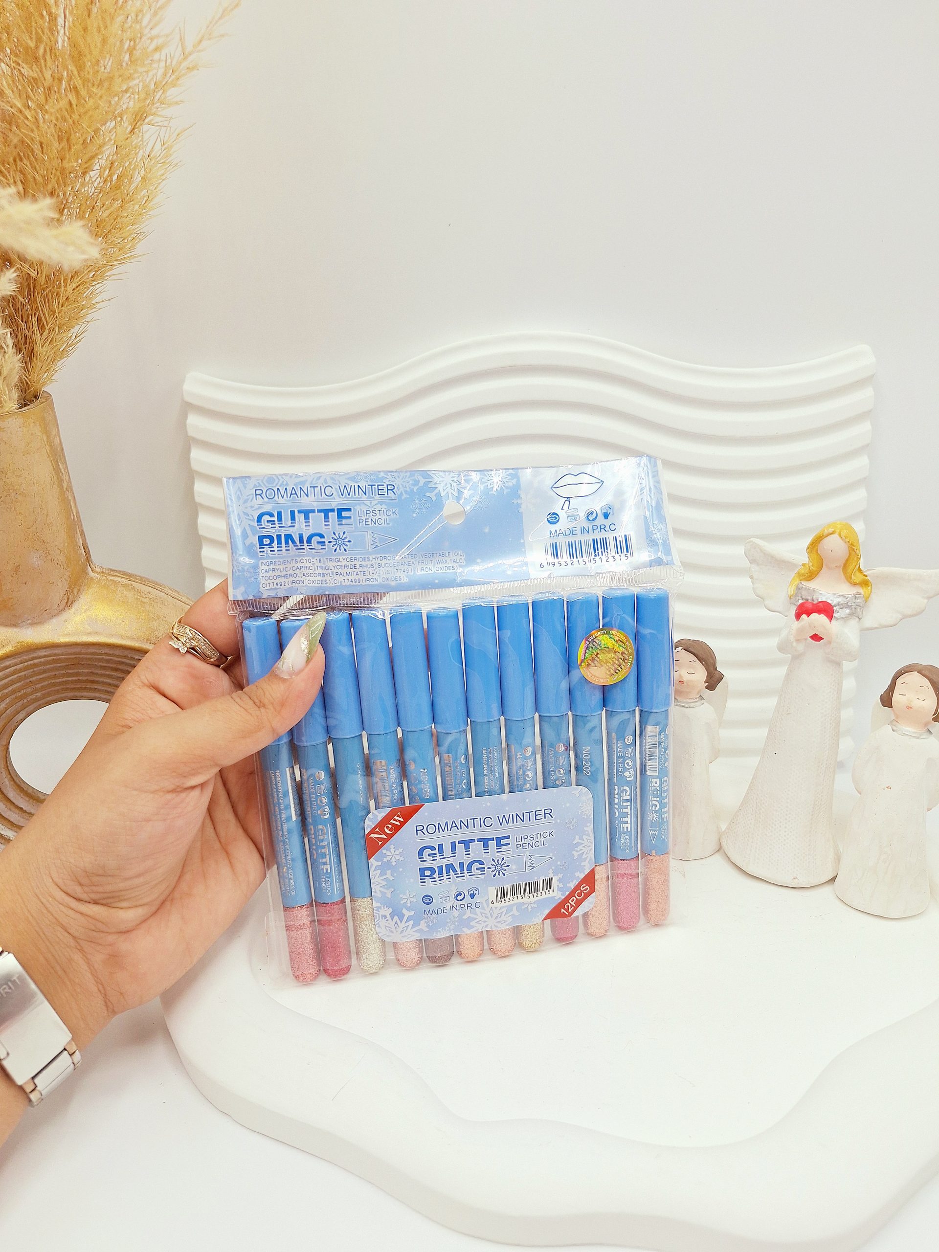پک 12 عددی رژ مدادی گلیتری ضد آب اورجینال برند رمانتیک کد 2315