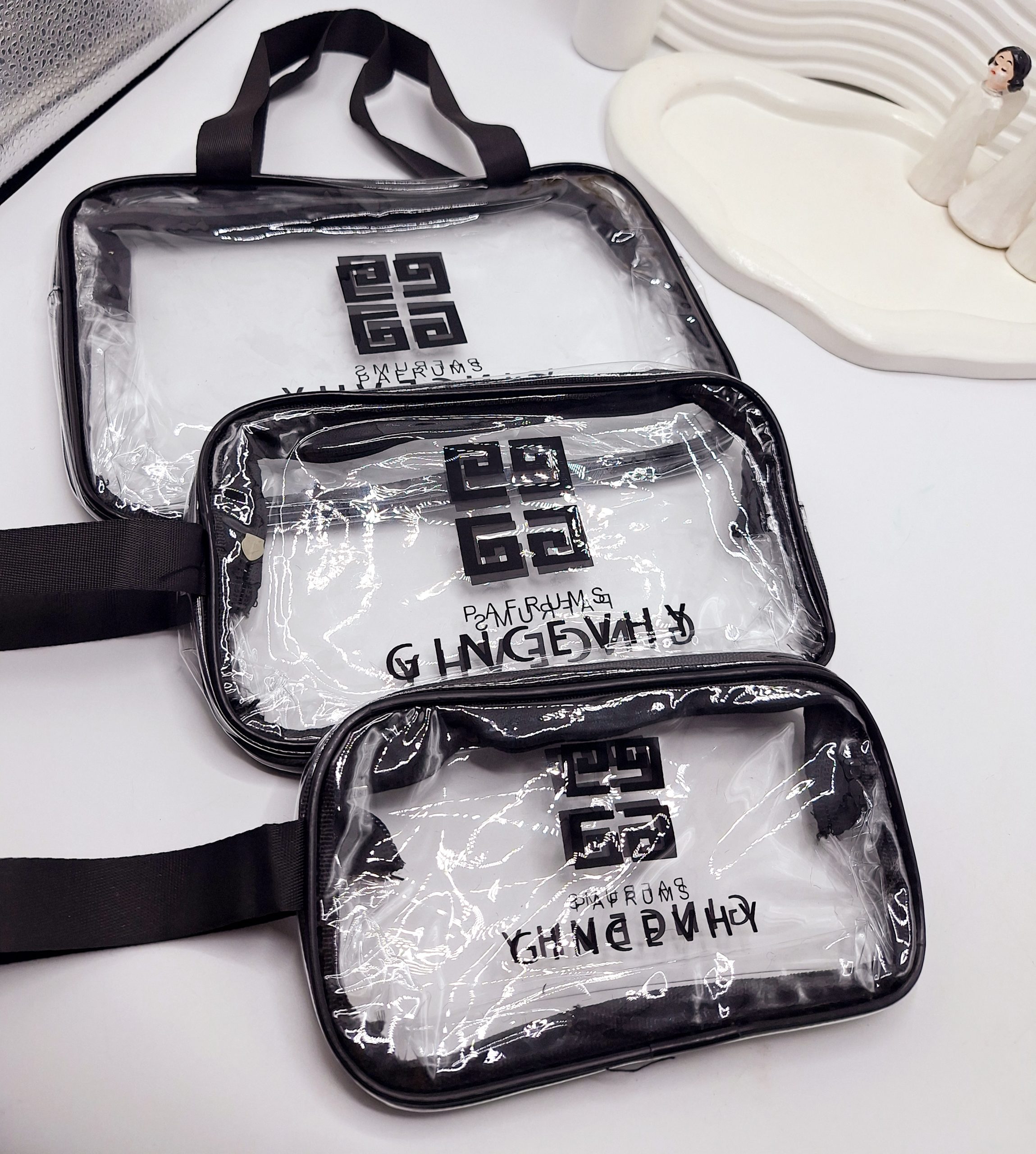 ست ۳ عددی کیف آرایشی شفاف ضدآب – مناسب سفر و نظم‌دهی لوازم با این ست کاربردی و زیبا، همیشه لوازم آرایشی و بهداشتی‌ات رو مرتب و در دسترس نگه‌دار! ویژگی‌ها: • شامل ۳ سایز مختلف: کوچک، متوسط و بزرگ – مناسب برای کیف دستی، چمدان یا استفاده روی میز آرایش • جنس بدنه: PVC شفاف با لبه‌های مشکی ضخیم و مقاوم – ضدآب و ضدلک • بسیار سبک و قابل‌حمل – مناسب برای سفر، باشگاه، استخر و استفاده روزمره • دارای زیپ روان و دسته حمل (در سایز بزرگ) برای جابه‌جایی راحت • دید کامل داخلی – مناسب برای امنیت فرودگاهی و دسترسی سریع به وسایل • مناسب برای: لوازم آرایش، بهداشتی، اسپری‌ها، شامپو، برس، عطر، و حتی دارو یا اکسسوری