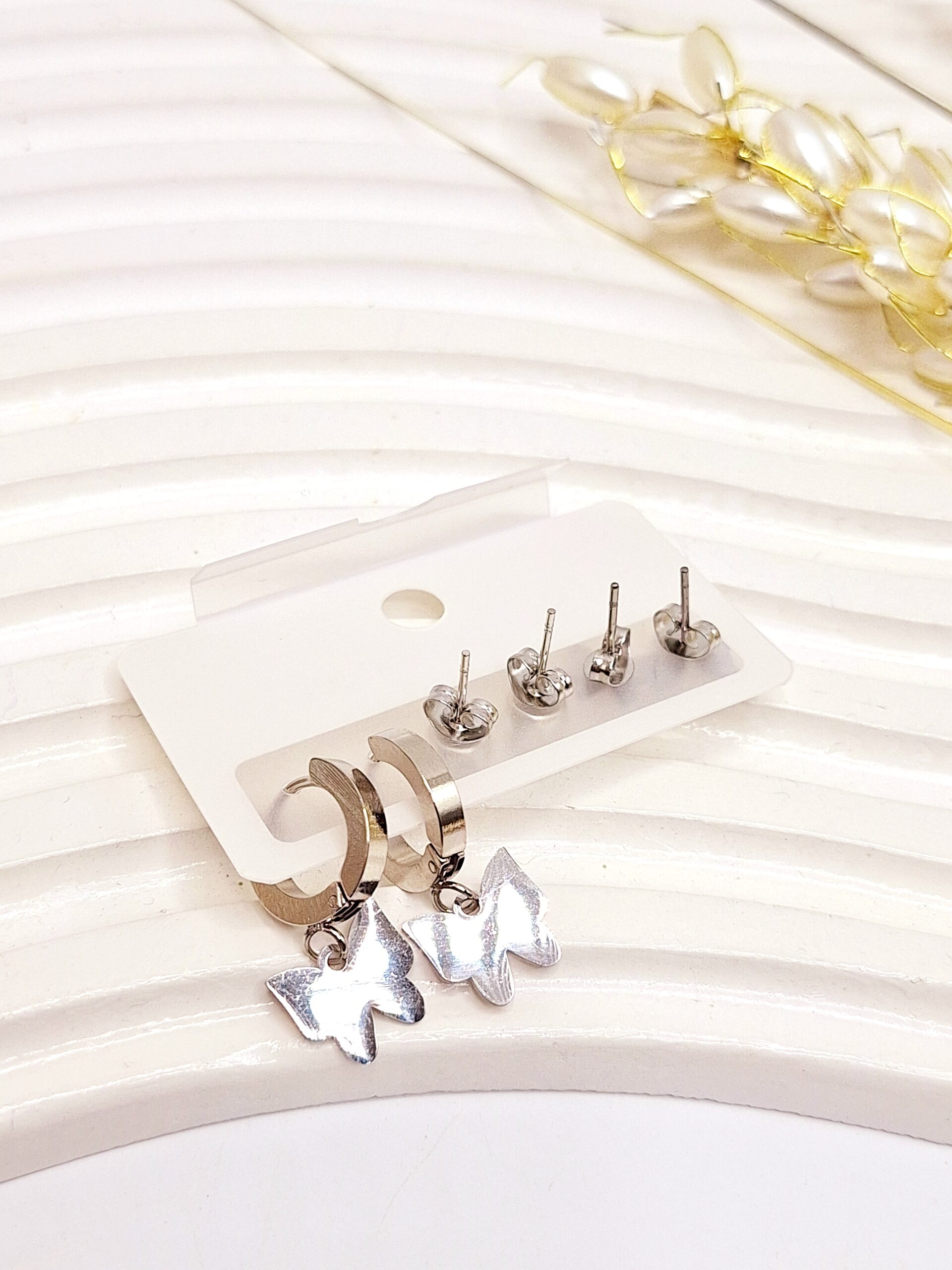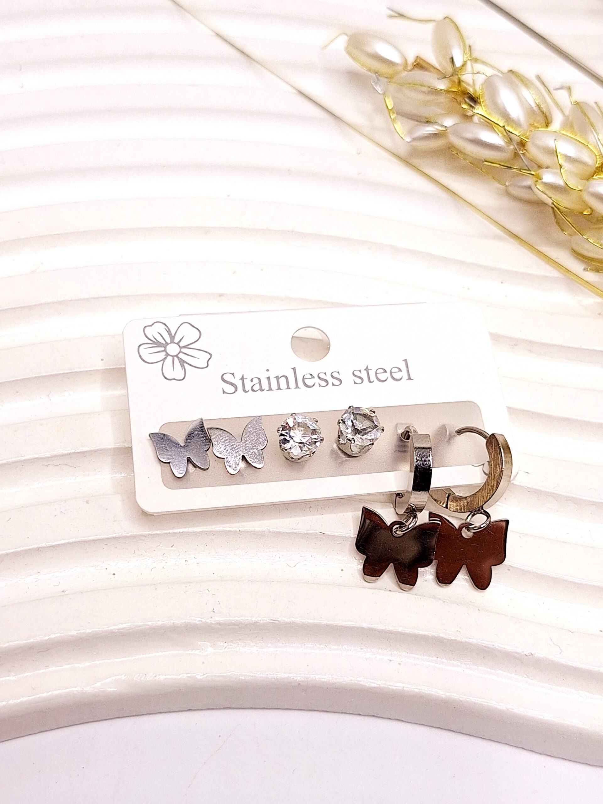 ناموجود پک 3 تایی گوشواره طرح پروانه استیل