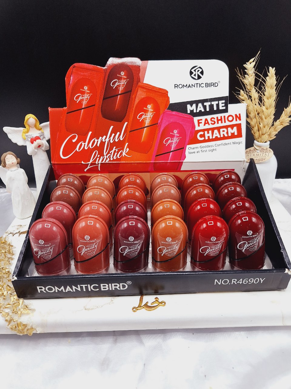 پک 6تایی رژ جامد مات برند ROMANCE BIRD کد R4690Y یکی از جذاب ترین رژلبی هست که زیبایی شما را دوچندان میکند.رژلب یکی از پرمصرف ترین و کاربردی ترین لوازم آرایشی میباشد. پک 6تایی رژ جامد مات برند ROMANCE BIRD کد R4690Y با بافتی نرم و کاملا یکدست و فرمولاسیون بکار رفته ماندگاری بالایی دارد.