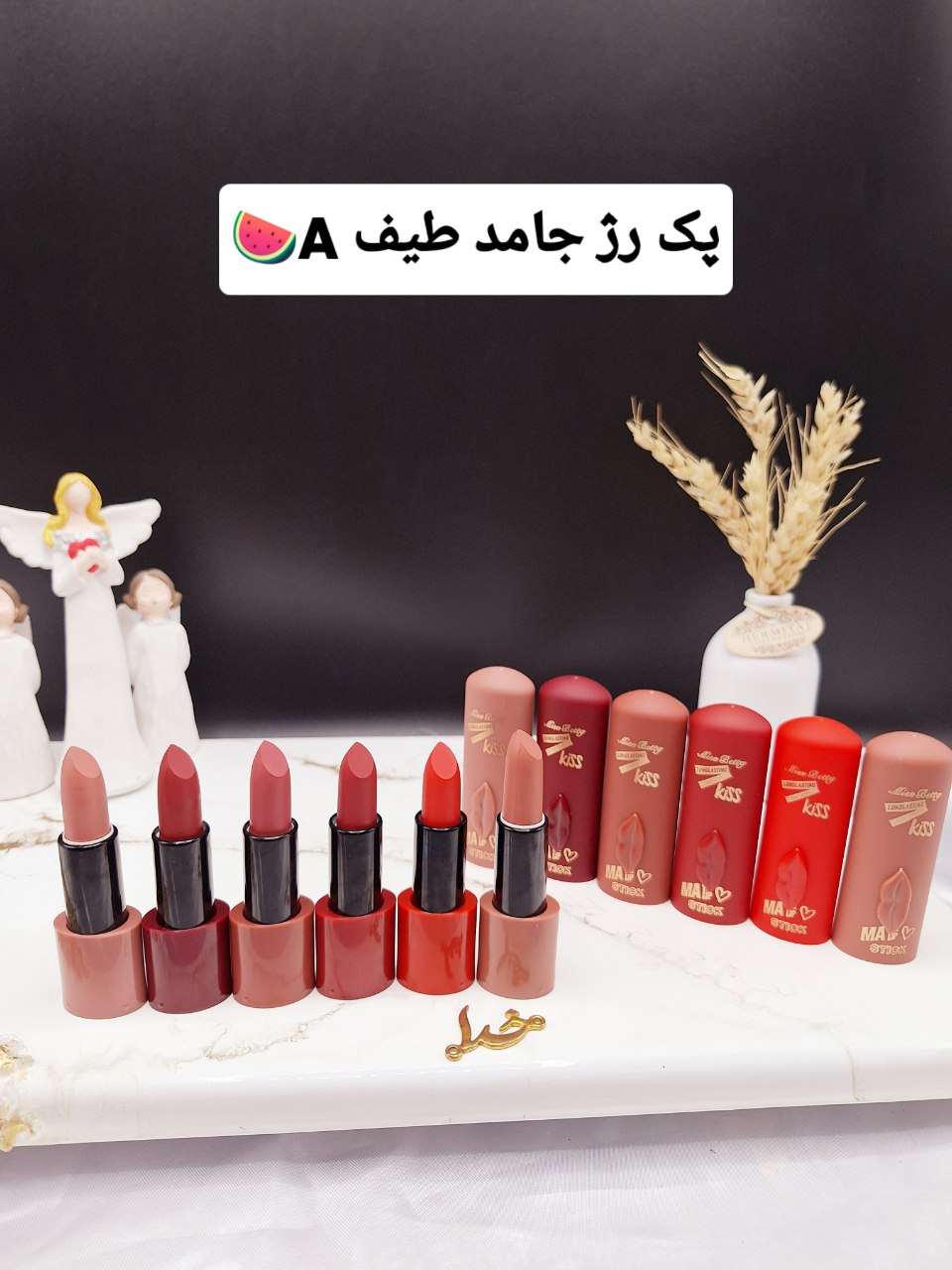 در اینجا به معرفی مشخصات و خرید پک 6عددی رژ جامد مات طرح لب برند میس بیوتی Miss Betty کد K166 می پردازیم. پک 6عددی رژ جامد مات طرح لب برند میس بیوتی Miss Betty کد K166 یکی از با کیفیت ترین رژلب های موجود در بازار است، زیرا این رژلب بدون سرب است. و مصرف مواد آرایشی سرب دار در دراز مدت ممکن است باعث آسیب رساندن به بدن شود. بنابراین اگر هم رژلب بدون سرب استفاده نمی کنید باید مواظب باشید که هنگام خوردن و آشامیدن مواد آرایشی رژلب وارد بدن شما نشود. پک 6عددی رژ جامد مات طرح لب برند میس بیوتی Miss Betty کد K166 از رنگدانه های بسیار بالایی برخوردار است بنابراین جلوه ای خاص بر روی لب های ما ایجاد می کند.