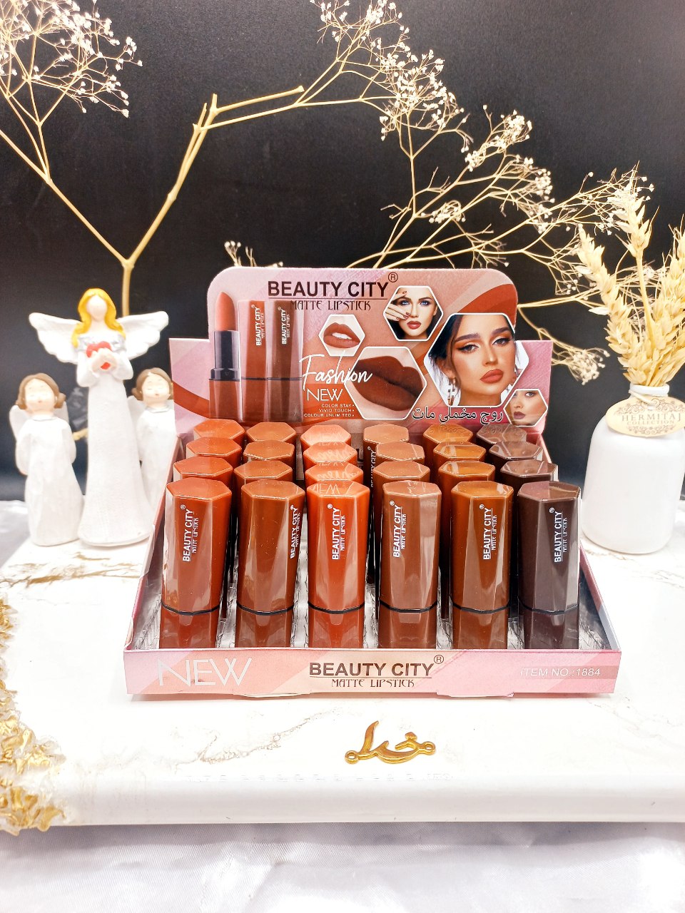 پک 6 تایی رژ جامد مات و مخملی بیوتی سیتی BEAUTY CITY کد 1884 دارای پیگمنت بالا و یکدست می باشد و در رنگ های جذاب و دارای کیفیت بالایی می باشد که مورد توجه بانوان قرار گرفته است.