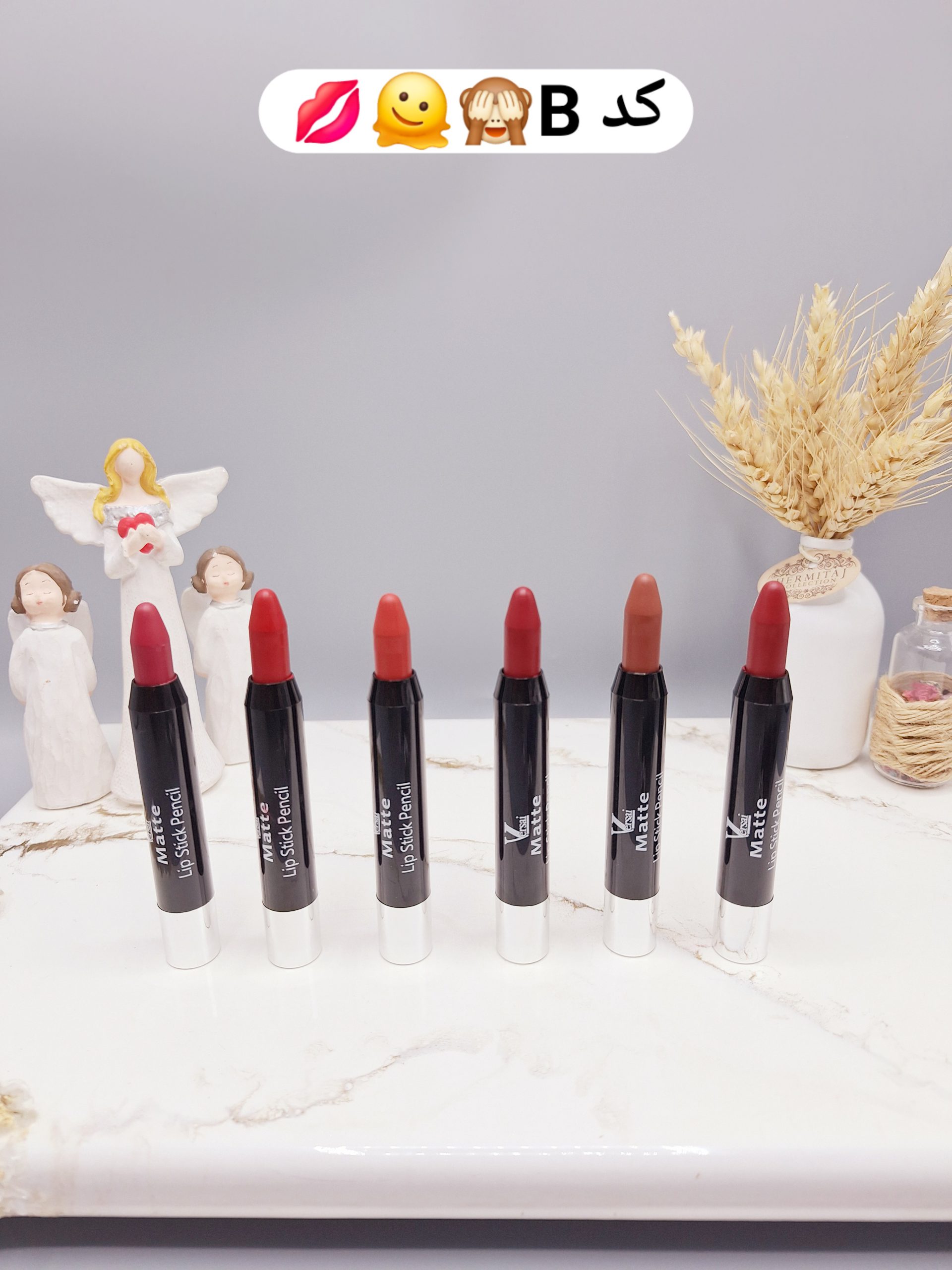 پک رژلب اوردیم چ پکیییییی اورجینال و اصلی برند Versai این رژلبا پیچیه بچه ها تاااا 2028 انقضا داره انقد گفتین رژلب مدادی بیار بیار ک براتون پکی اوردممم غوغا با ادم حرف میزنه همچین ترکیب رنگی هیچ جا نیسیس پک ۶ تایی رژلب مدادی جامد خوشبوووو‌و مات و مخملی داره ماندگاریش خیلی خوبه رنگبندی فوق العاده کاربردی( رنگای ملایم و گوشتی و باربی طور)( ۶ عدد رژلب با این قیمت فوق العاده و اورجینال دیگه گیر نمیاد