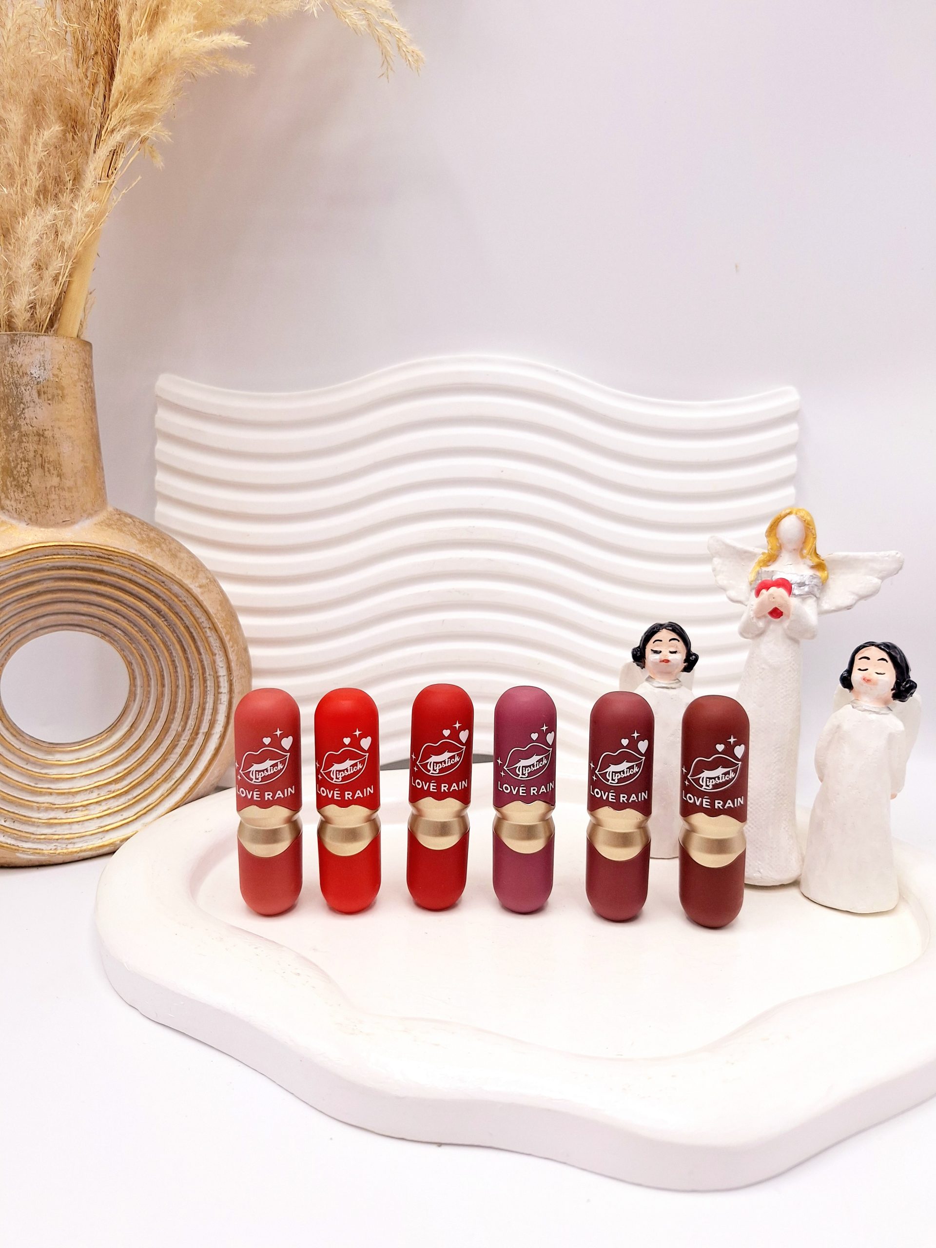 پک 6 تایی رژ لب جامد پوکه ای طرح لب برند LOVÉ RAIN کد NO:LR-LS2015