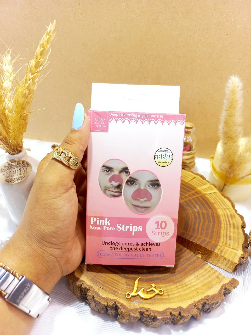 بعد از شستشوی صورت و زمانی که پوست خیس و نم دار هست، چسب رو روی بینی قرار دهید و روی چسب را با آب مرطوب کنید.