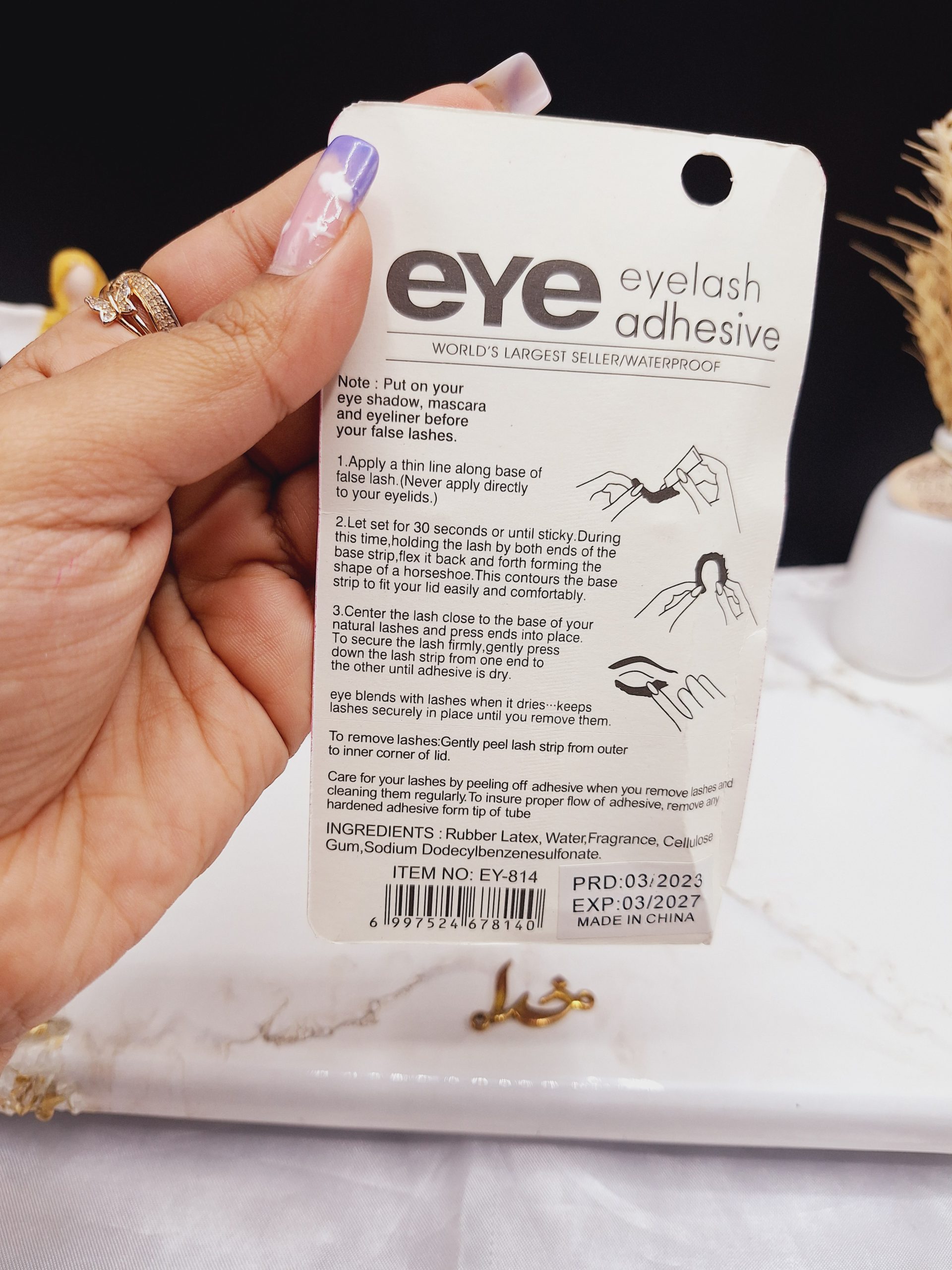 چسب مژه ضد آب 7 گرمی Eye فرمولاسیون این چسب مژه به گونه ای است که بسیار مقاوم بوده و به هیچ عنوان به چشم و پلکان آسیبی نمی زند. این محصول دارای بافت بسیار سبکی است و هرگز بر روی چشمان سنگینی نمی کند.مراحل آموزش چسباندن مژه مصنوعی با چسب مژه ضد آب رنگ مشکی Eye :