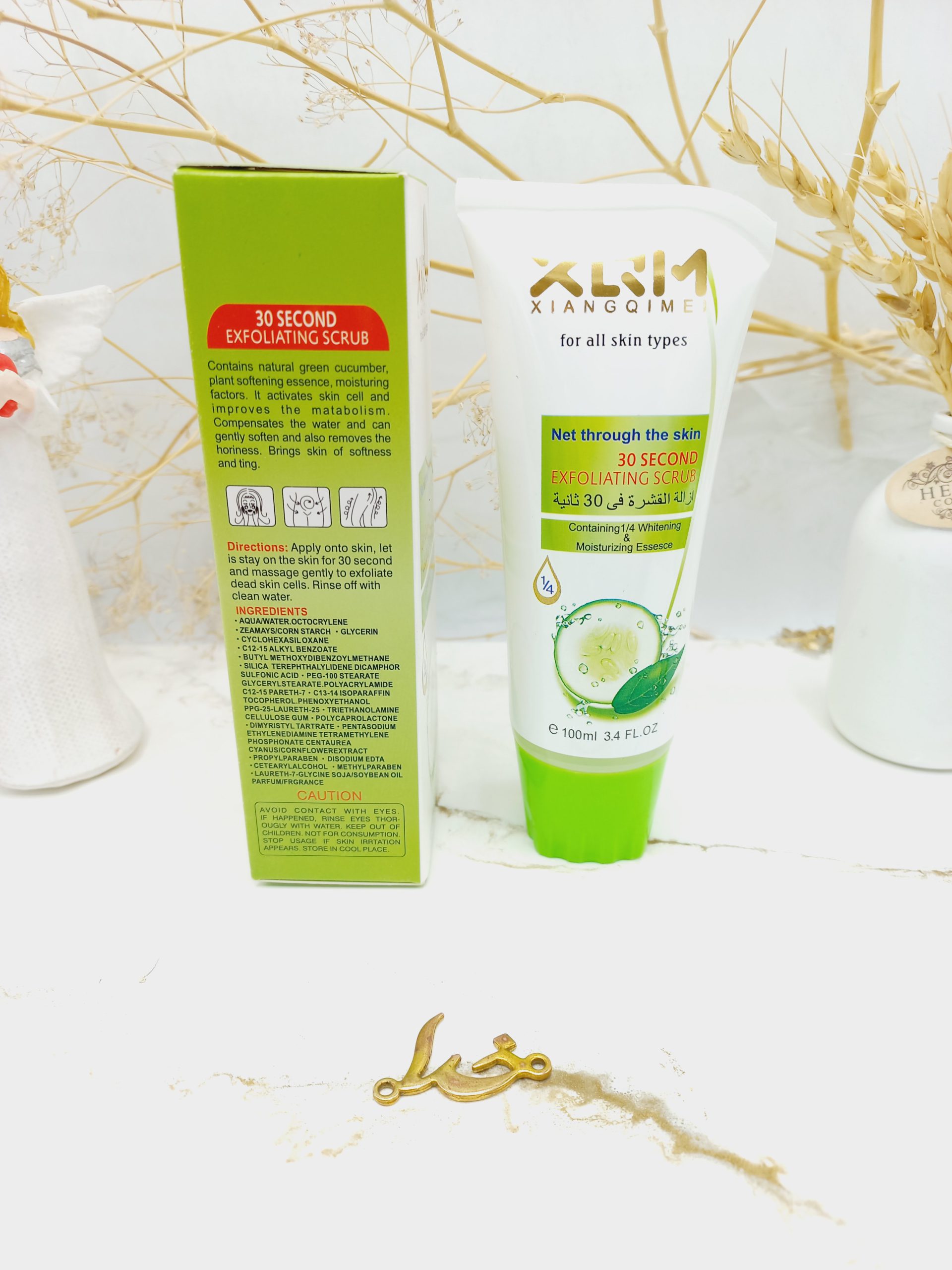 ژل اسکراب لایه بردار و روشن کننده فوری 30 ثانیه ای صورت و بدن (خیار) XQM کد x1942 لایه برداری قوی است، بلافاصله پس از استفاده 77 درصد از سبوم (چربی) اضافه پوست را کاهش می دهد. تعادل طبیعی پوست را برقرار می کند. با این کار درخشش ناشی از چربی اضافه روی صورت، برطرف شده و پوستتان جلوه ای مات و یکدست پیدا می کند.