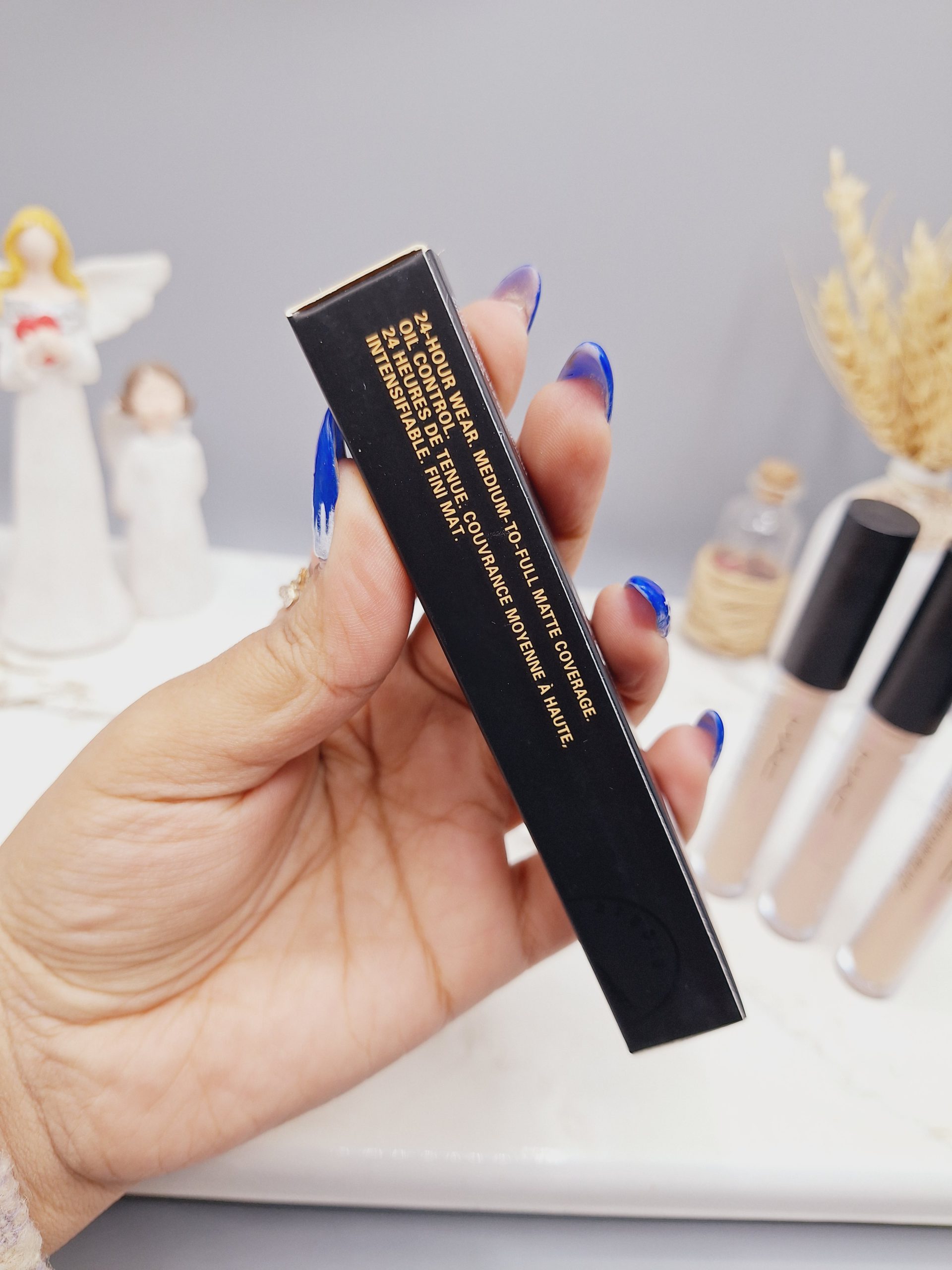 کانسیلر مک با بافت مایع سبکی که دارد، پوشش خوبی روی پوست داشته و حالتی مات به ظاهر میبخشد. این کانسیلر با وجود ماندگاری بالایی که دارد تمام عیوب و نواقص ظاهری را میپوشاند. از ویژگیهای این کانسیلر ضد تعریق و ضد آب بودن آن میباشد که به راحتی پاک نخواهد شد. این محصول رطوبت پوست را حفظ و از بروز جوش و آکنه نیز جلوگیری میکند. این کانسیلر تا ۲۴ ساعت ماندگاری دارد و در طی این مدت هیچگونه ماسیدگی، پیل شدن و ایجاد چین و چروک به وجود نخواهد آمد.