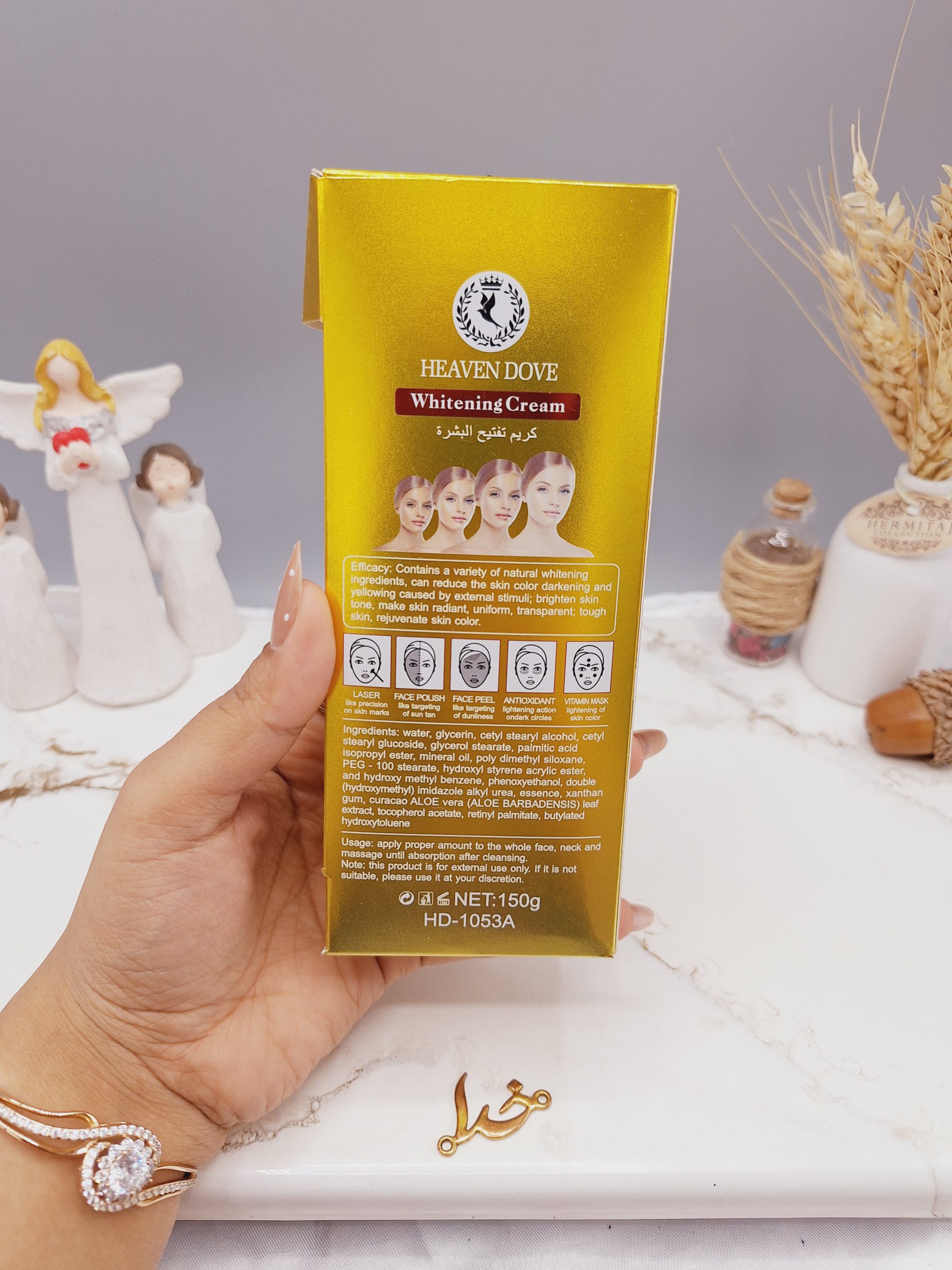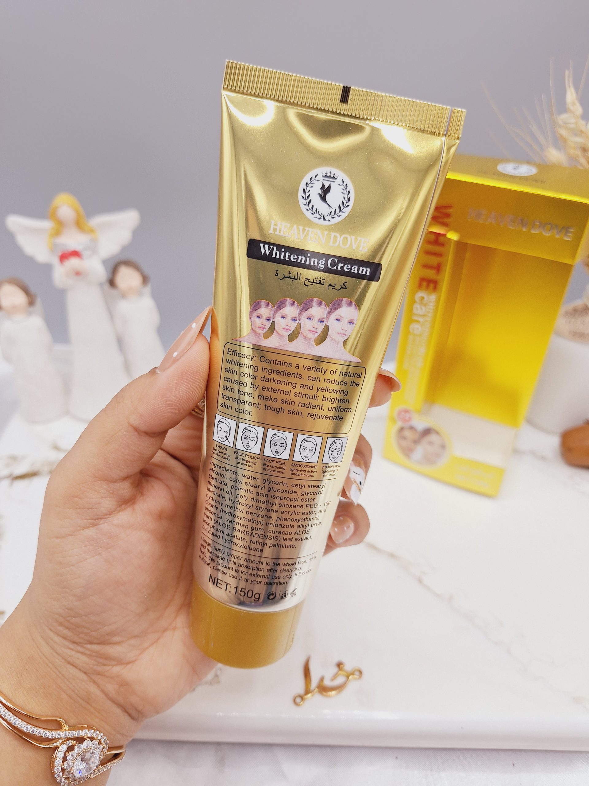 کرم تیوپی مراقبت از پوست سفید کننده و آبرسان پوست برند HEAVEN DOVE کارتن طلایی کد HD_1053 A یک سفید کننده عالی و سریع پوست صورت و بدن مشکلات پوستی را به طور موثری بهبود می بخشد رطوبت پوست را افزایش میدهد ، چین و چروک ها را از بین می برد و لاستیسیته را بهبود میبخشد .