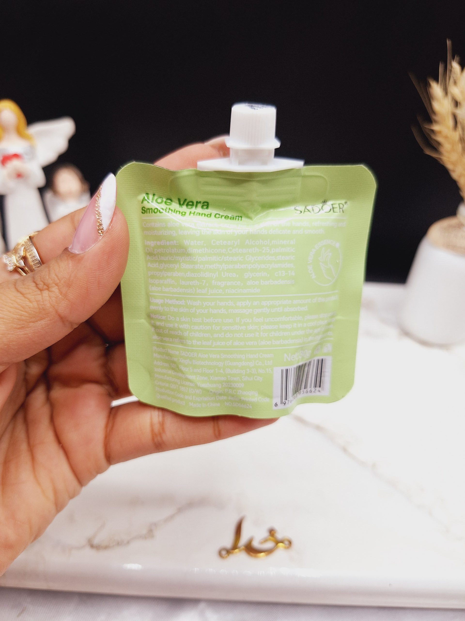 کرم دست ساندیسی آلوئه ورا سادور Sadoer کد 6624 دارای عصاره خالص آلوئه ورا و دیگرترکیبات مفید می باشد، خیلی سریع جذب پوست می شودو آب موجود در سلول های پوست را ذخیره می کند و مانع از خشک شدن و دهیدراته شدن پوست میشود.