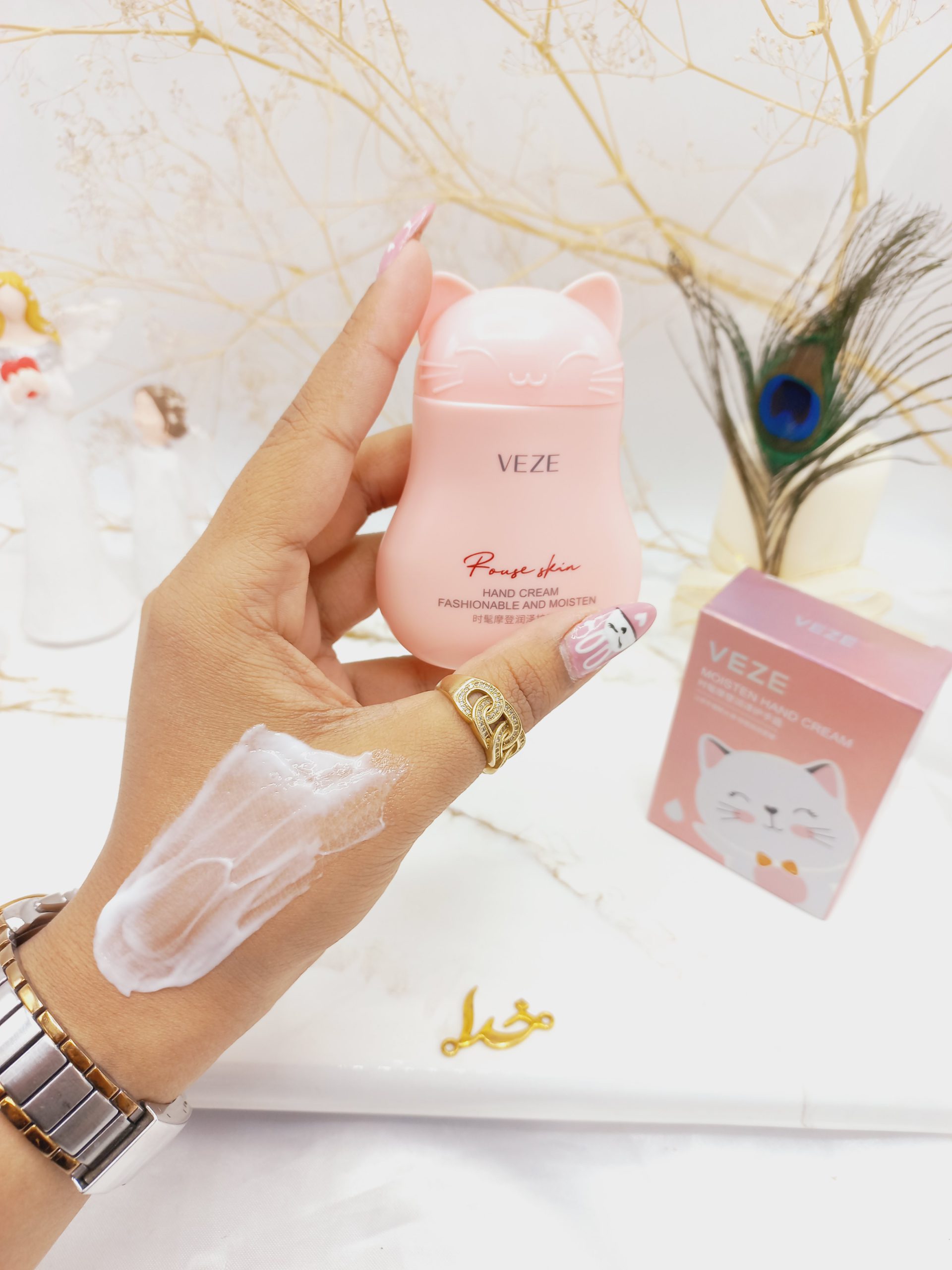کرم دست فوق آبرسان طرح گربه صورتی VEZE با ترکیب عصاره های مخصوص اضافه شده ، می تواند رطوبت کافی دستان را حفظ کند ، بافت پوست را نرم کند، باعث رفع خشکی و پوسته پوسته شدن روی دست ها و افزایش خاصیت کشسانی پوست شود. طراوت بخش و شاداب کننده نیز میباشد. دست ها را لطیف و شاداب ، نرم و مرطوب میکند.