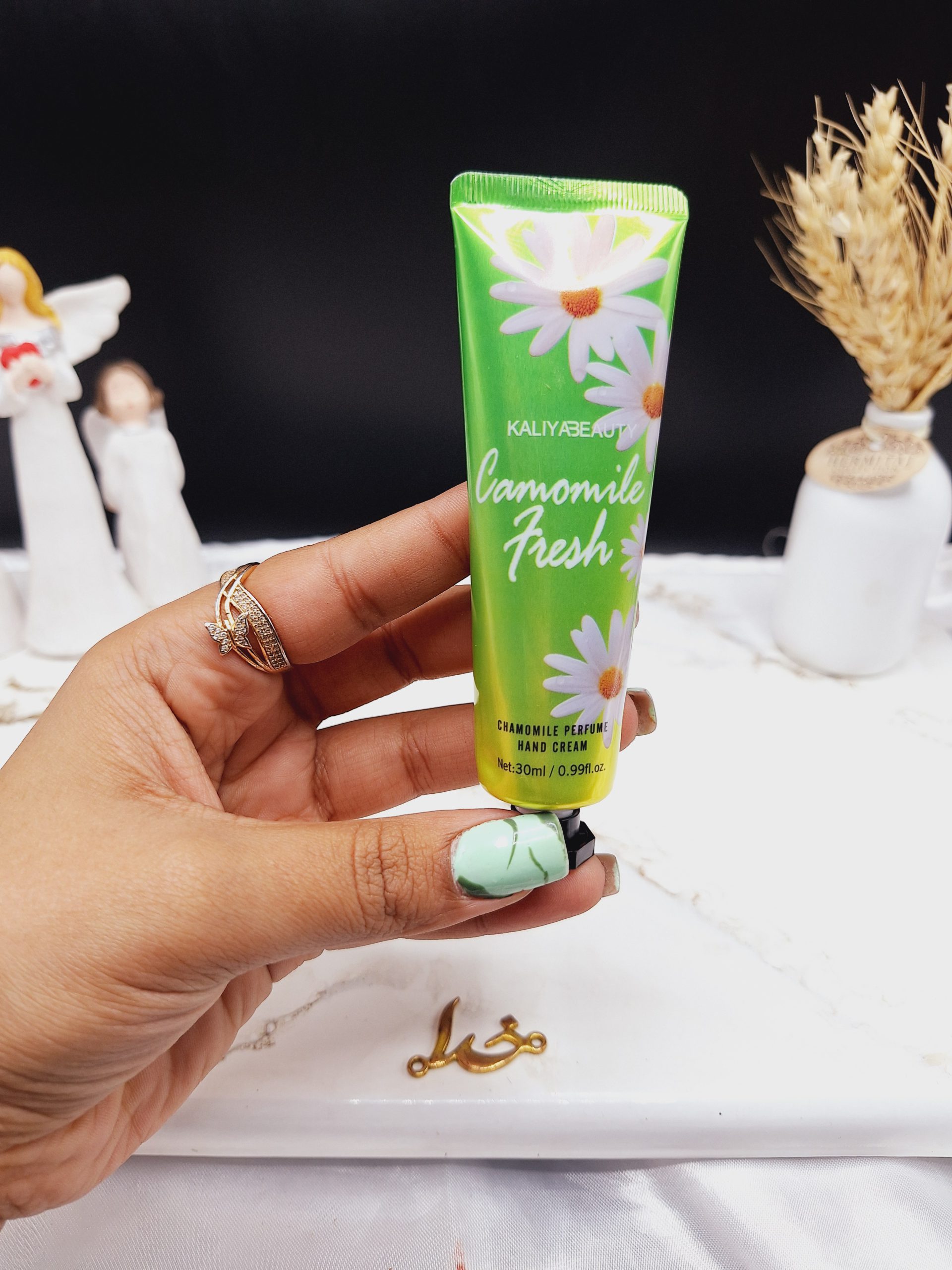 کرم دست 30گرم با رایحه گل بابونه برند KALIY ABEAUTY کد F7130 حاوی عصاره ی گل بابونه است. یک کرم مرطوب کننده دست که باعث محافظت و لطافت پوست در تمام طول روز می شود. بافت سبکی دارد و بدون چرب کردن پوست دست، سریع جذب می شوند و با مقدار کمی از کرم کل دست ها مرطوب می شود. تغذیه کننده است و از ترک، پوسته پوسته شدن و خشک بودن پوست دست جلوگیری می کند. دستها را صاف و نرم و لطیف نگه می دارد و با مرطوب کردن پوست باعث براق تر شدن پوستتان شده و مراقبت از پوست دست را کامل می کند. اندازه ی کوچک و مسافرتی دارد و حمل آنها بسیار راحت است و همیشه می توان آن را در کیف به همراه داشت.