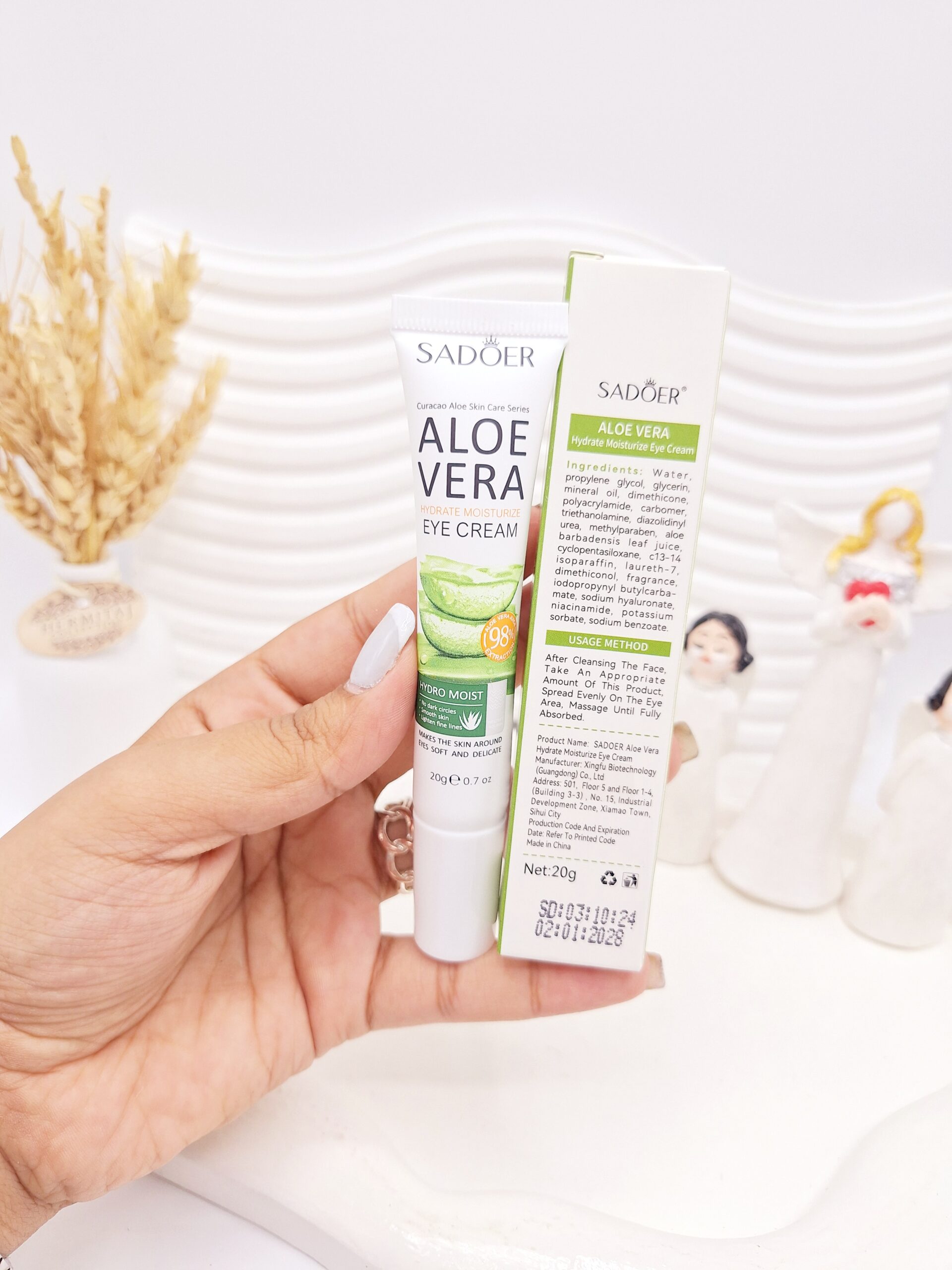 نحوه استفاده کرم دور چشم ضد پیری و جوانساز 98 درصد آلوئه ورا سادور SADOER