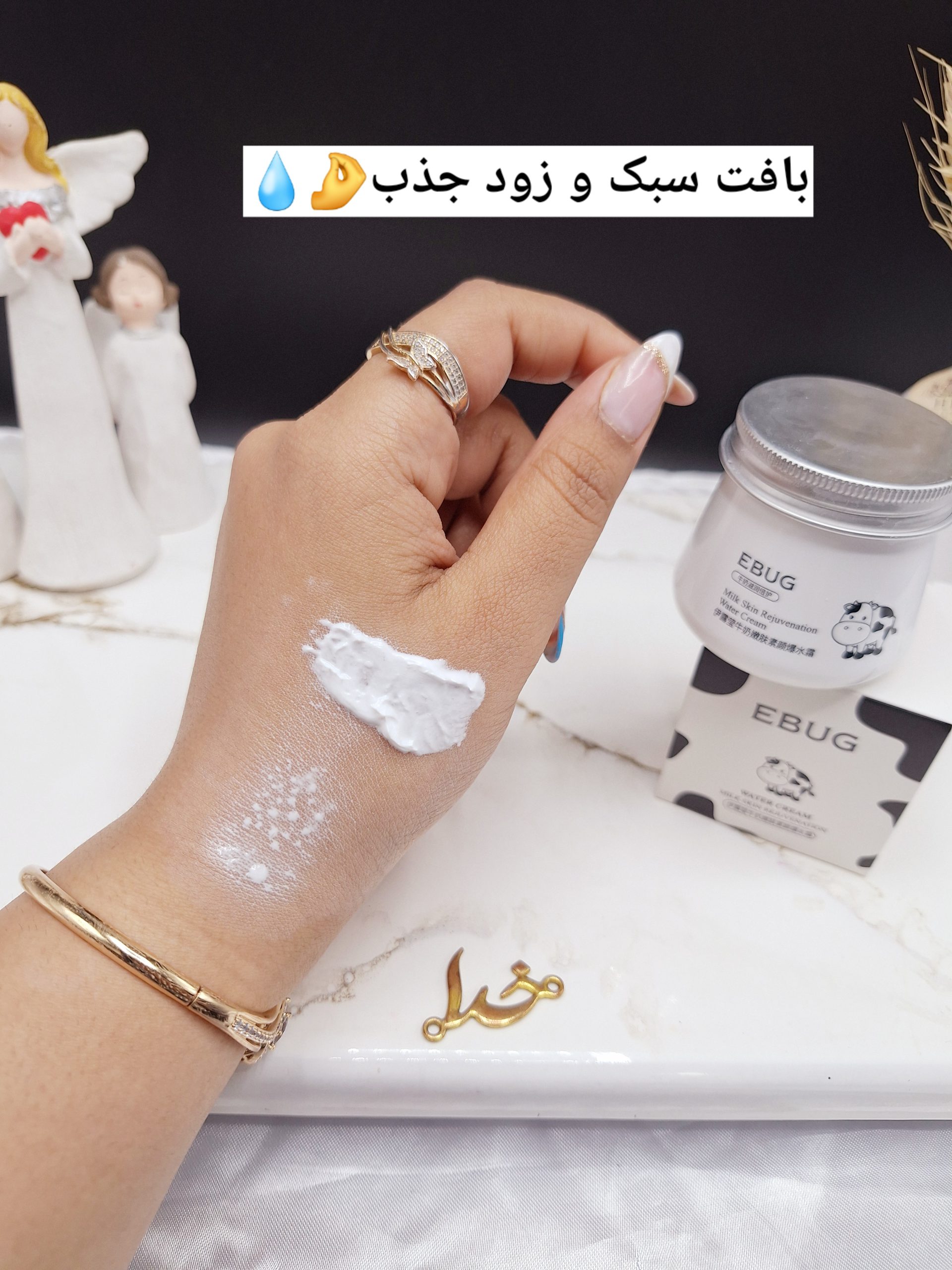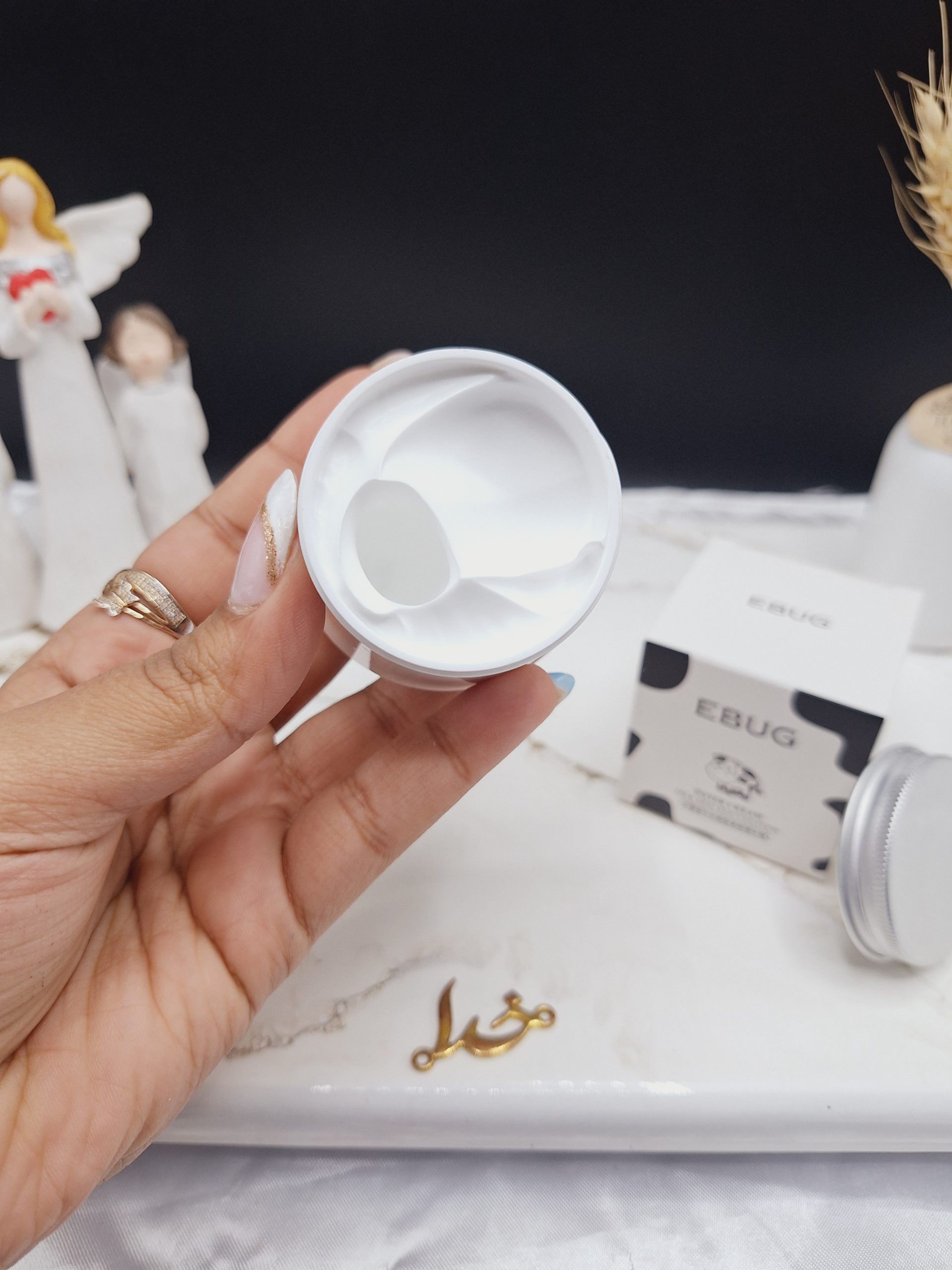کرم شیر گاو روشن کننده و آبرسان ایباگ EBUG دارای بافتی سبک و سرشار از ویتامین های مفید برای پوست است از این جمله می توان به ویتامین A اشاره کرد که از شیر گاو تهیه شده.