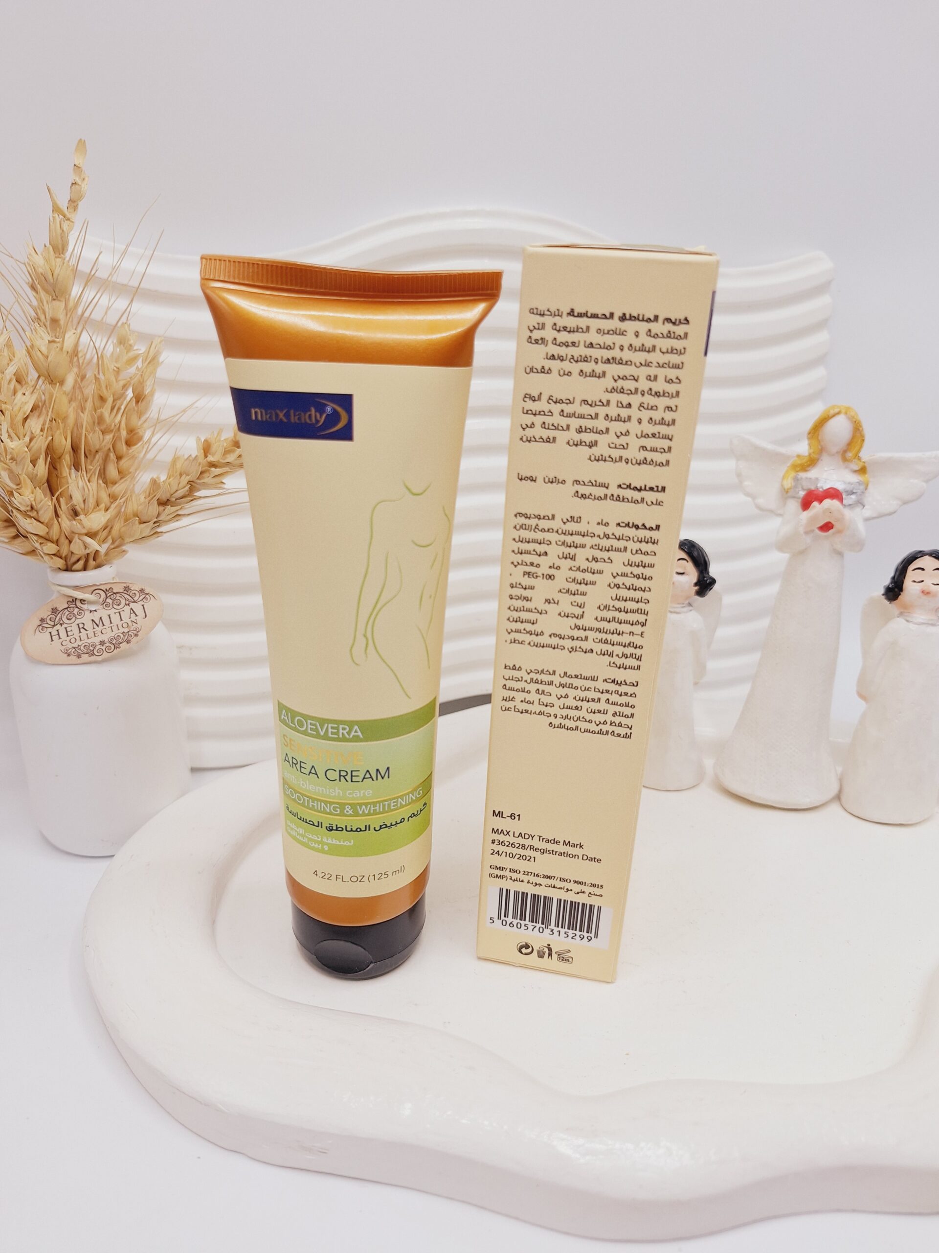 کرم سفیدکننده MAX LADY کد 5299 با رایحه آرامشبخش آلوئهورا، راهحلی حرفهای برای روشنسازی و بهبود بافت پوست در نواحی حساس بدن است 💚🌿