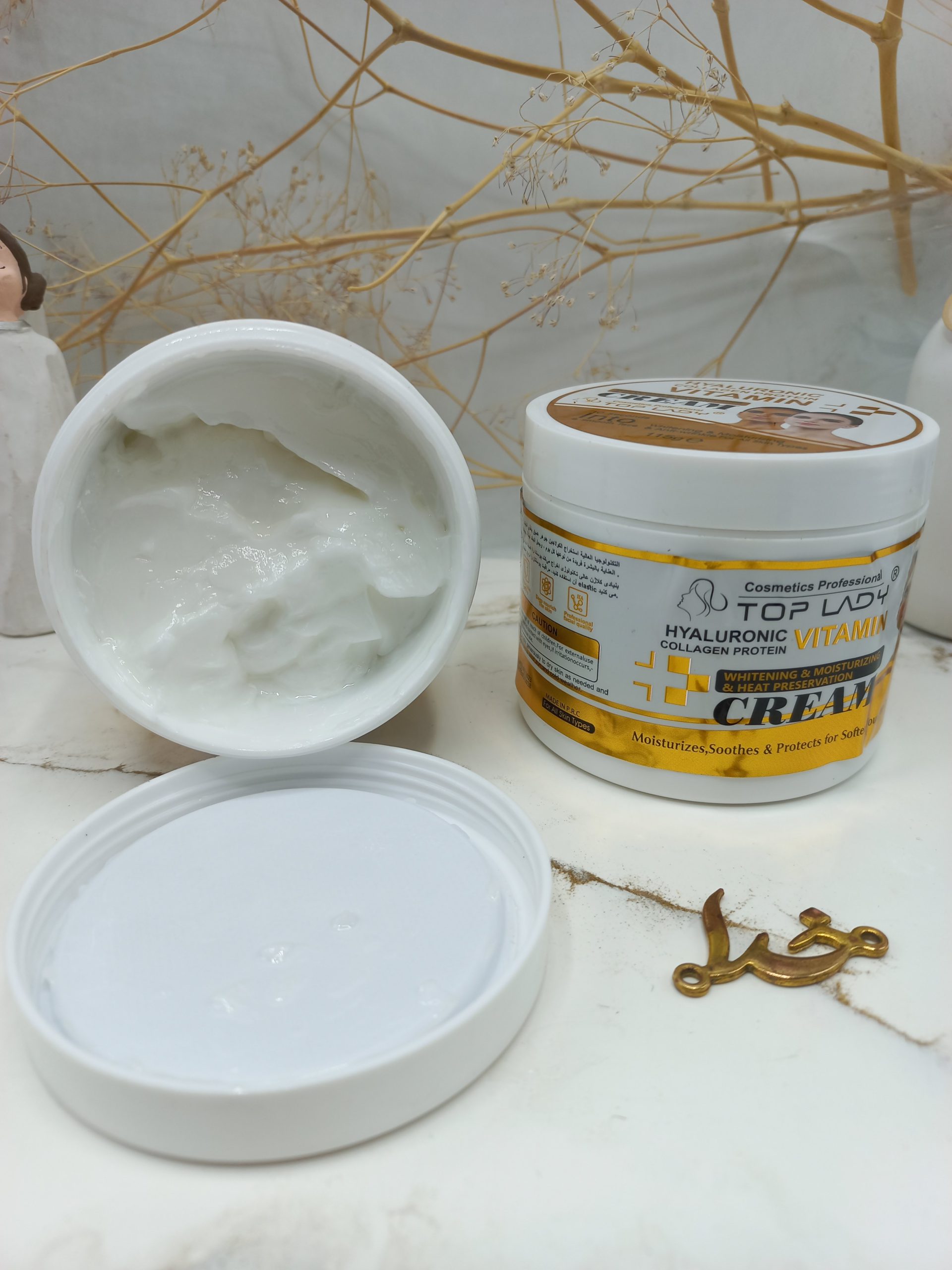 کرم سفید کننده و روشن کننده پروتئین و کلاژن هیالورونیک تاپ لیدی TOP LADY کد 15014 خاصیت جوان سازی و ضد چروک بالایی برای پوست شما را دارد .
