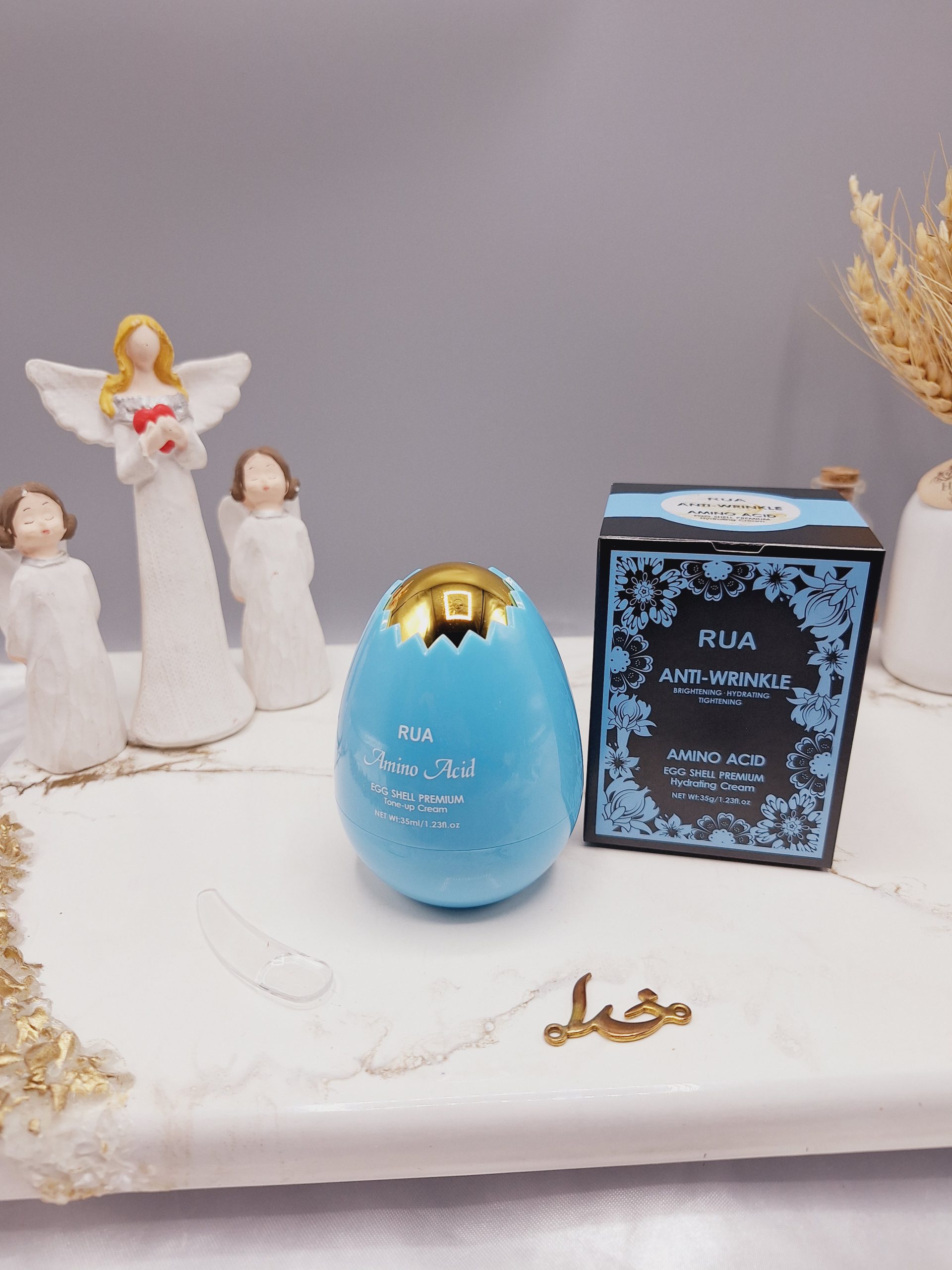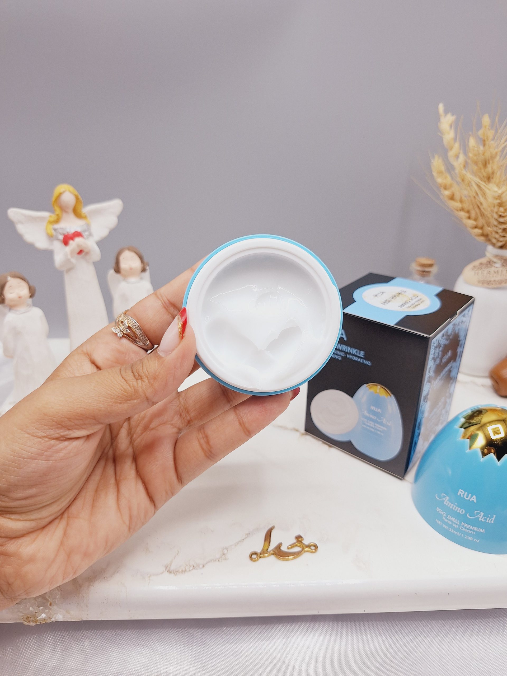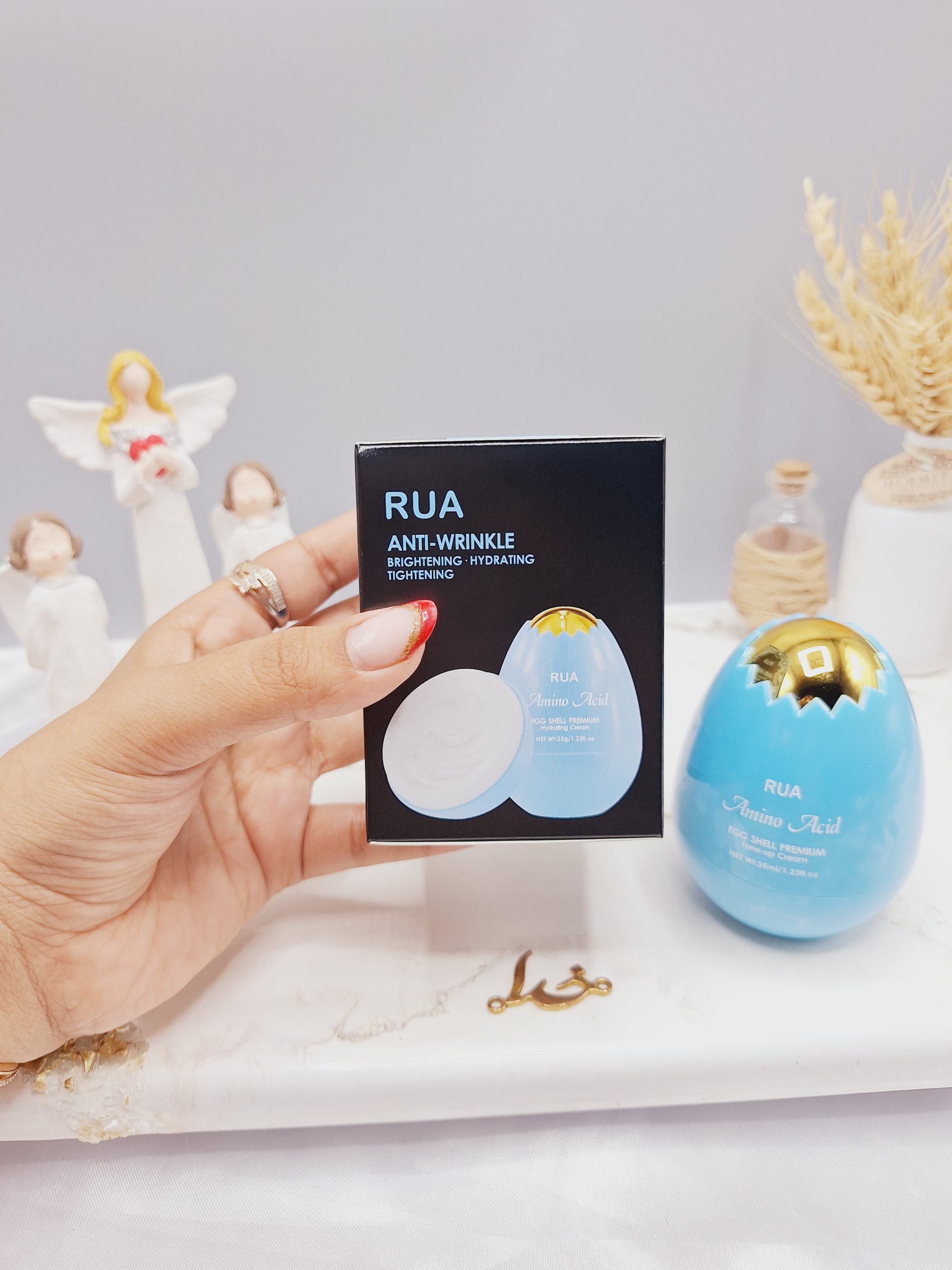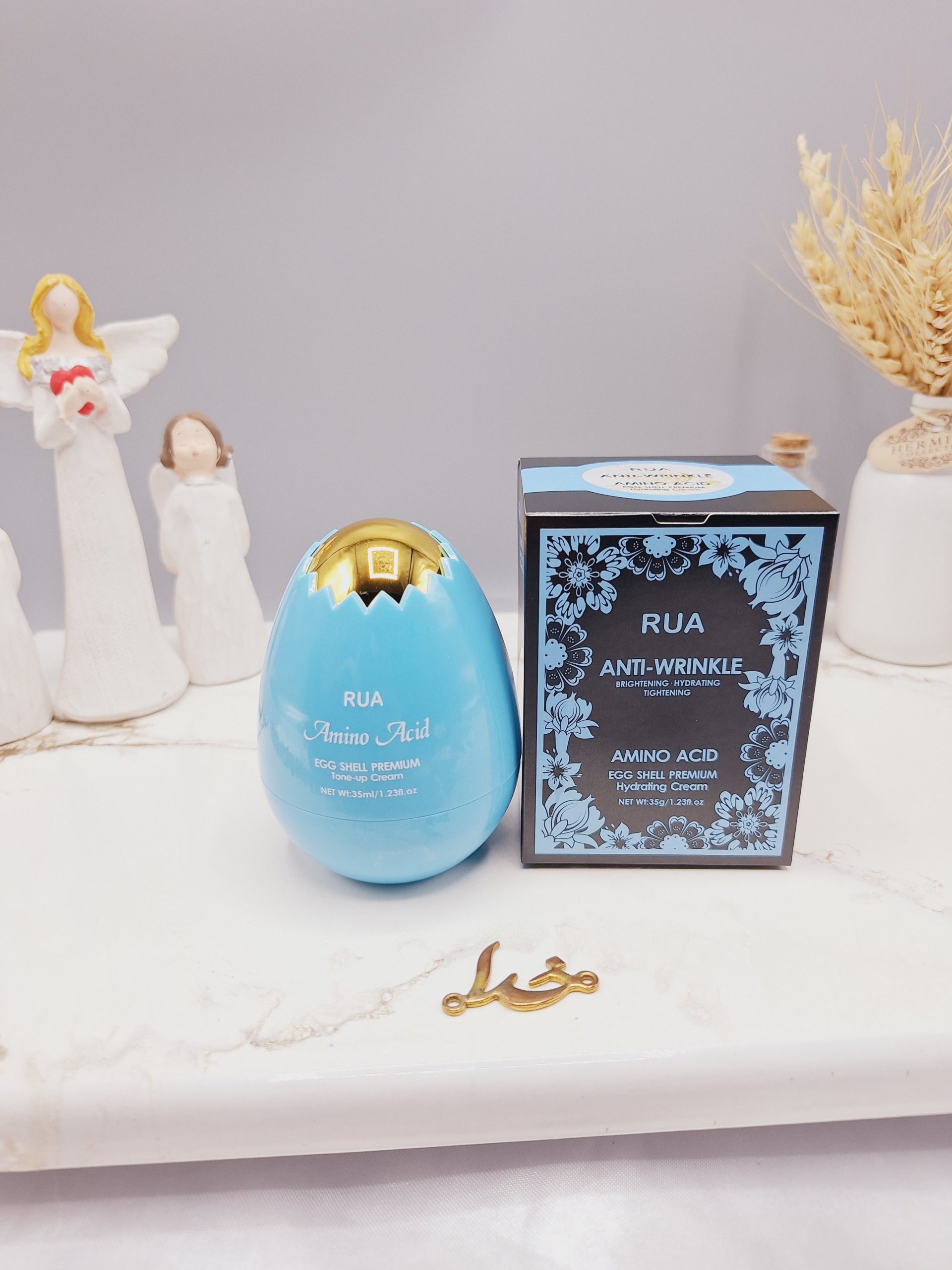 کرم ضد چروک و آبرسان پوست مدل تخم مرغی آبی برند RUA کد 60367 حاوی کلاژن هیدرولیز شده، هیالورونیک اسیدو ویتامین های مفیدبرای پوست میباشد و باعث باز شدن چین و چروک پوست شده و پوست را شفاف میکند.