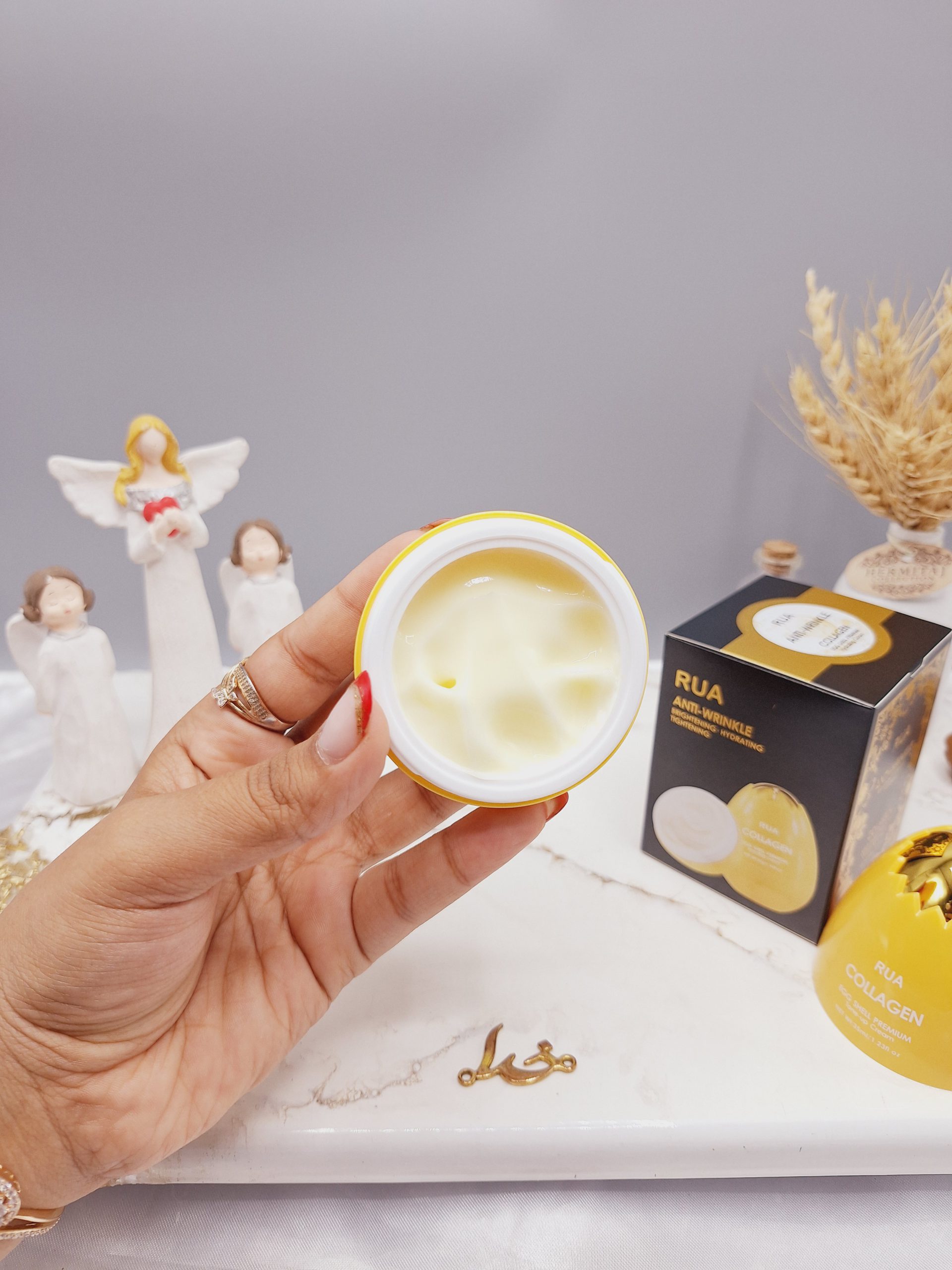 کرم ضد چروک و کلاژن ساز پوست مدل تخم مرغی زرد برند RUA کد 60350 باعث آب رسانی عمیق پوست میشه و همچنین از افتادگی پوست جلوگیری می کنه و باعث رفع افتادگی پوست هم میشه
