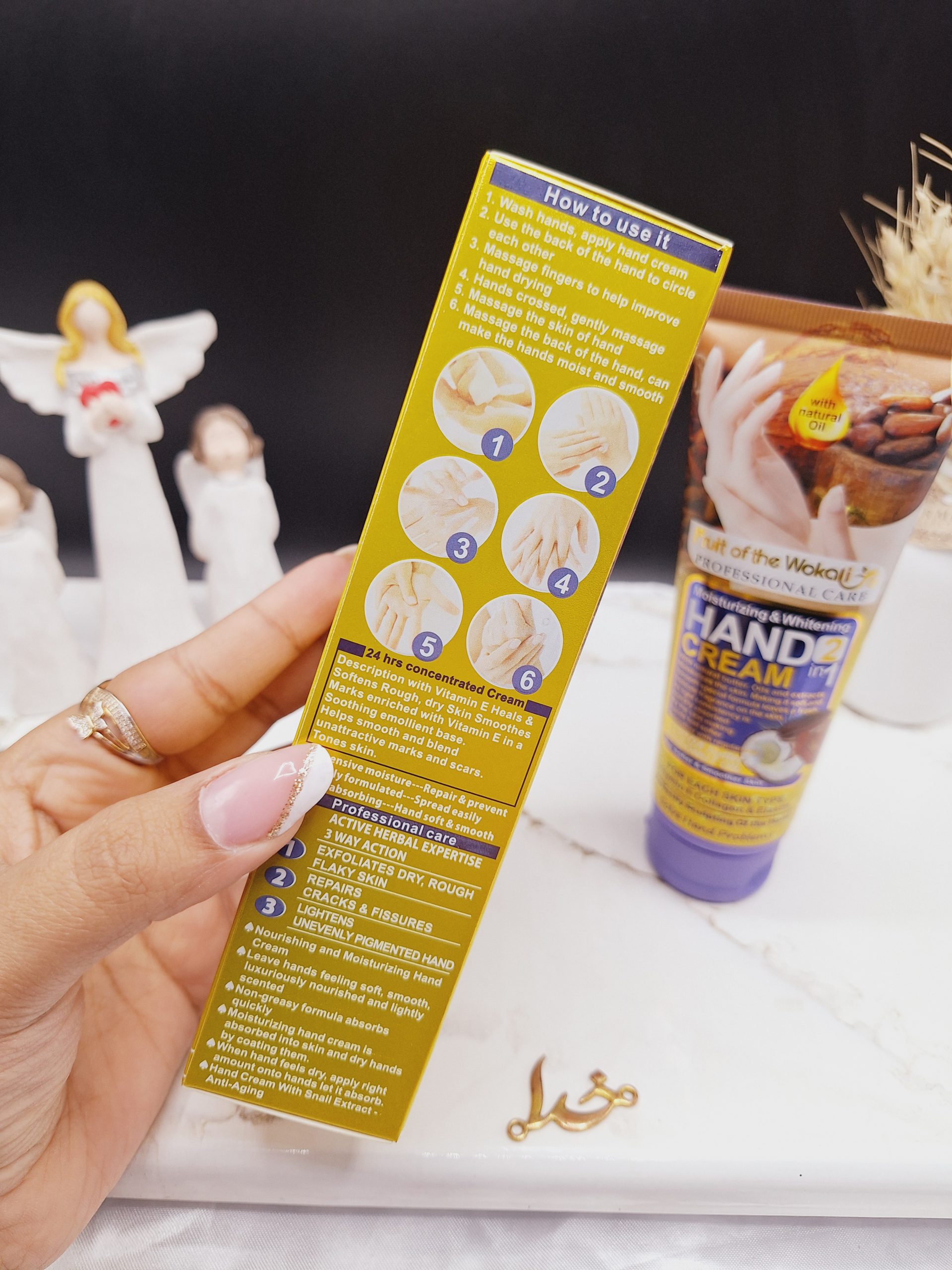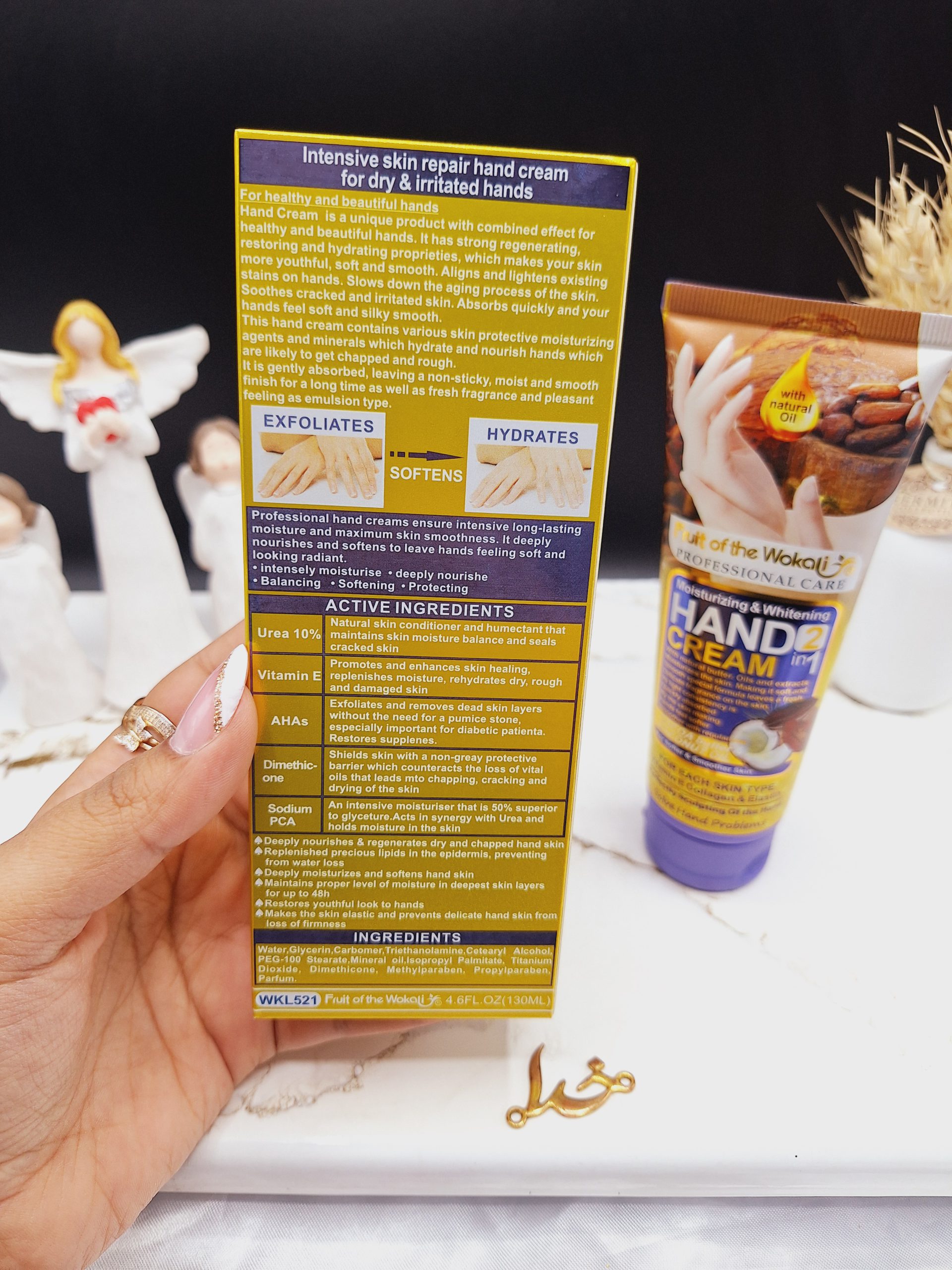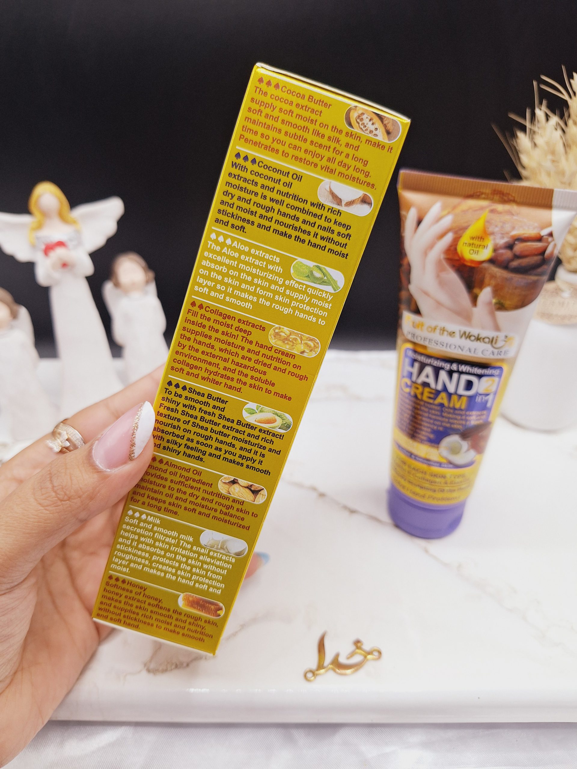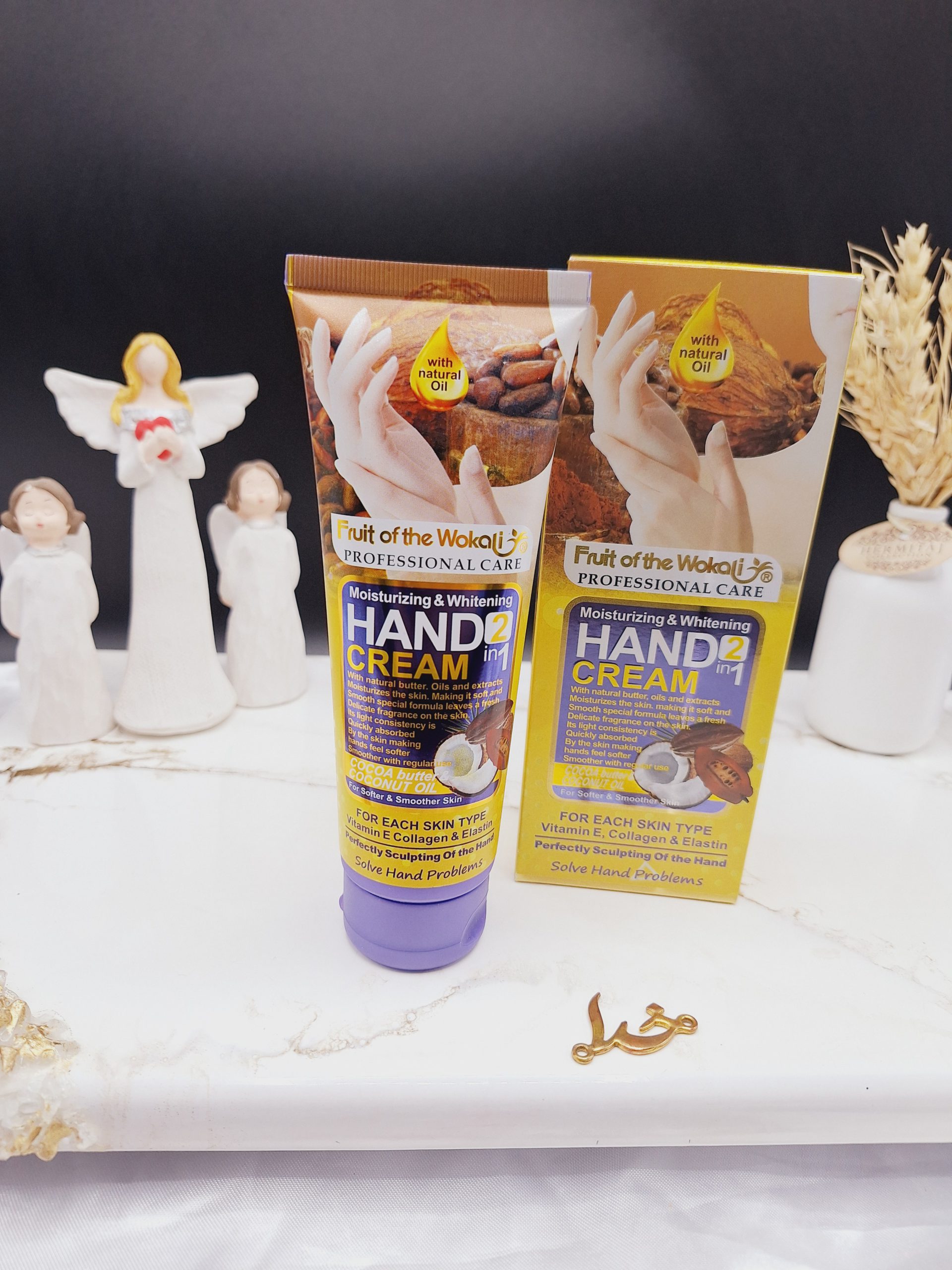 کرم مرطوب و سفید کننده دست کره کاکائو و روغن نارگیل وکالی WOKALI سرشار از روغن نارگیل است و بدون ایجاد حساسیت و احساس چربی، رطوبت پوست را افزایش می دهد.