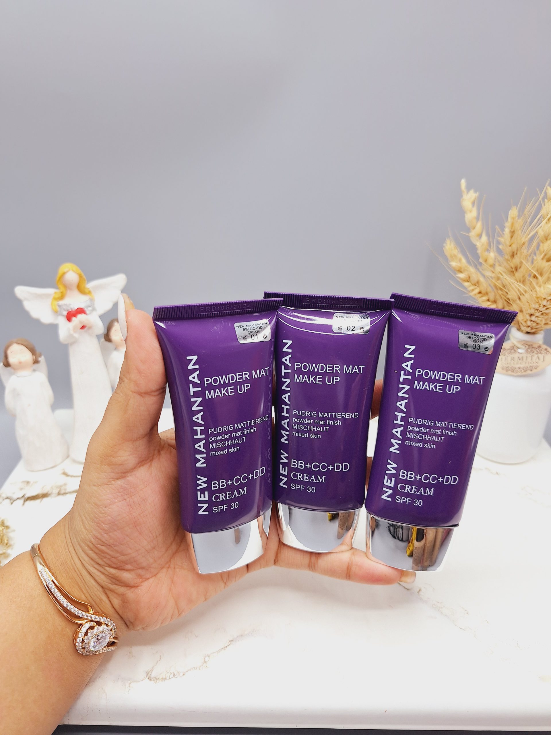 کرم پودر تیوپی نیو منهتن کد NM86003 دارای بی بی کرم + سی سی کرم + دی دی کرم نی باشد این محصول دارای spf30 است