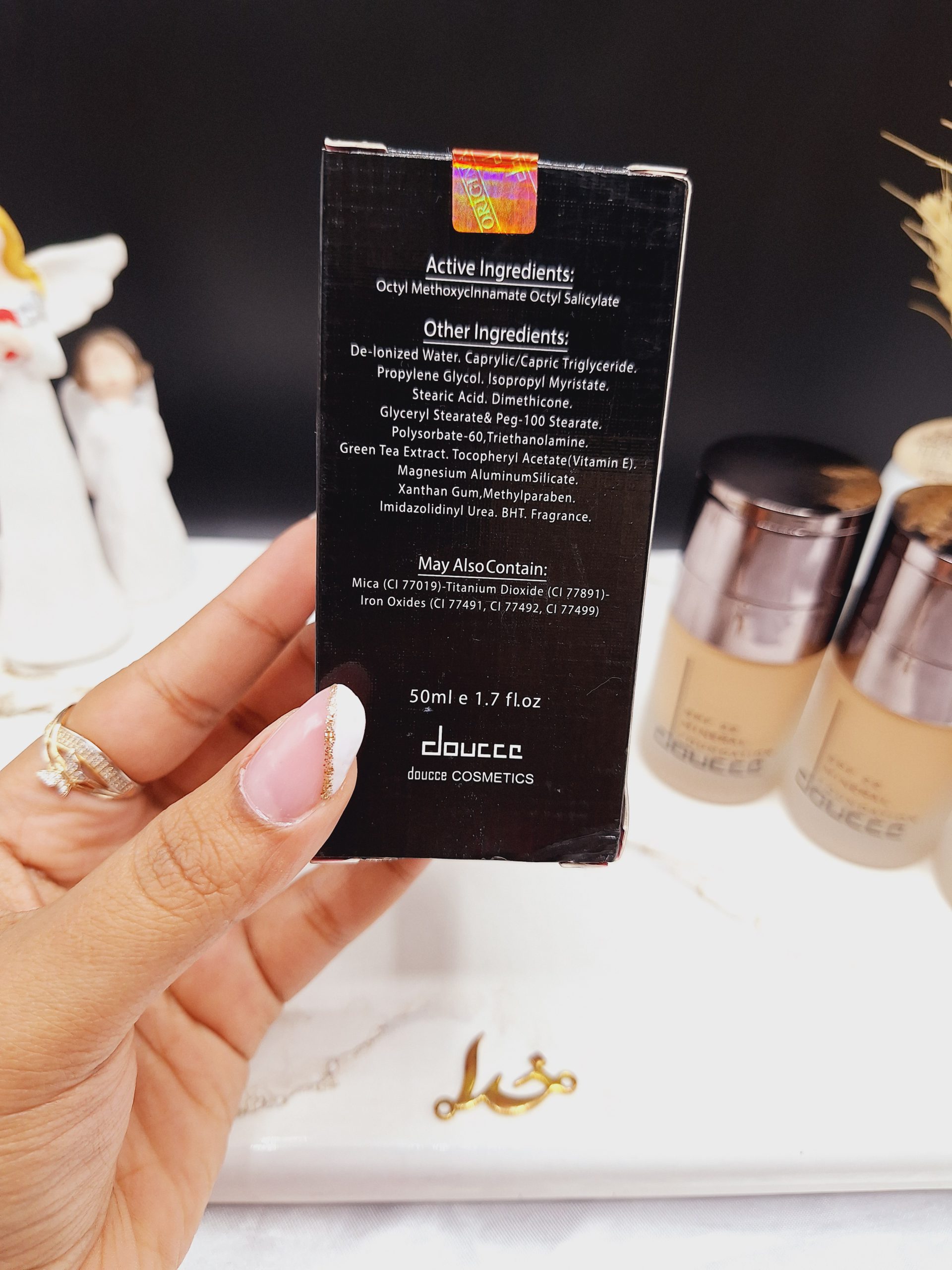 کرم پودر دوسه DOUCCE دارای ویتامین E کد 5324، دارای ویتامین E و SPF22 میباشد. به طوری که در عین حفظ رطوبت پوست، از آن در برابر اشعههای مضر و رادیکالهای خطرناک محافظت میکند. همچنین به دلیل دارا بودن عصاره چای سبز، دارای خاصیت ضد لک و چروک میباشد.