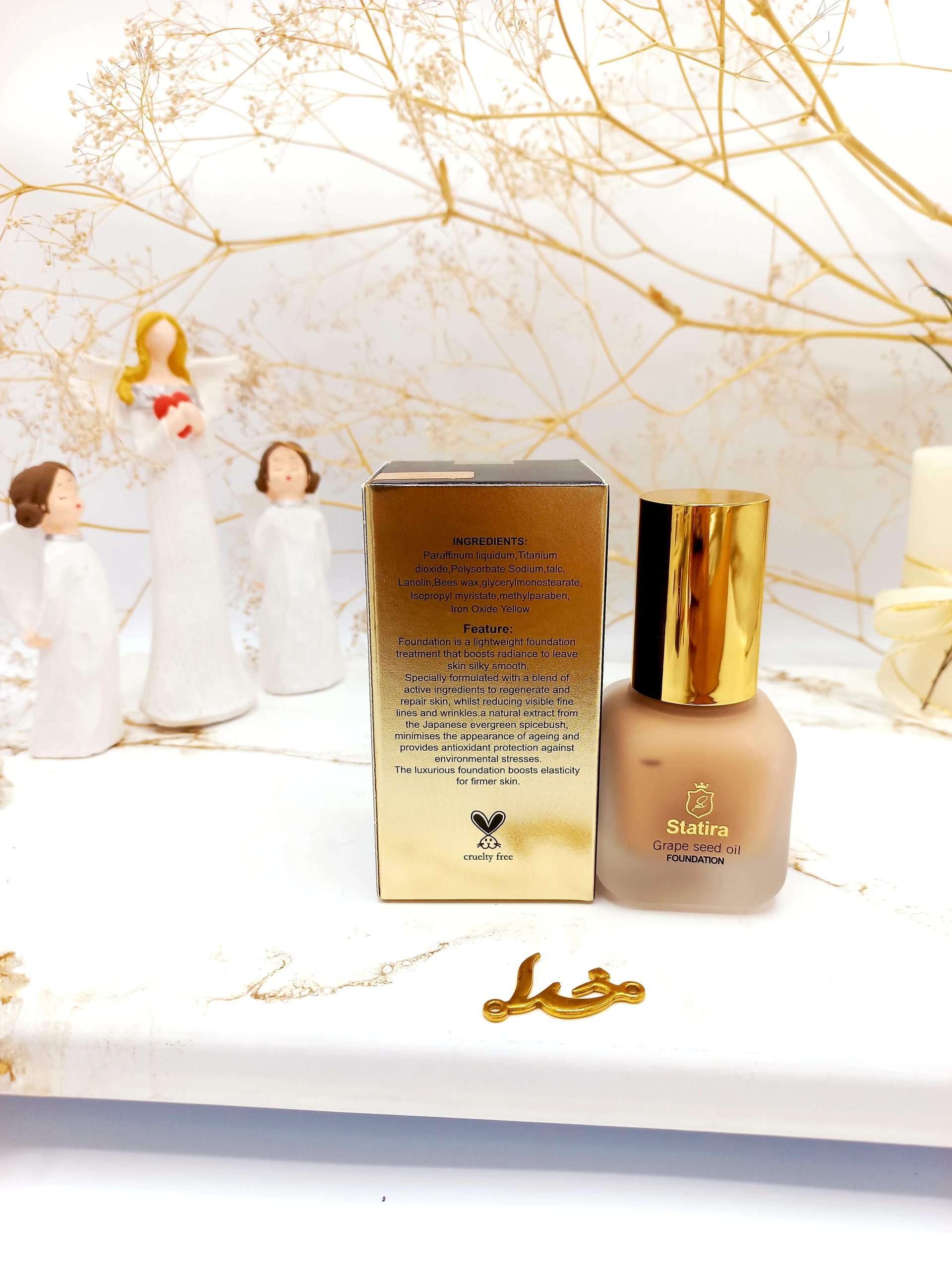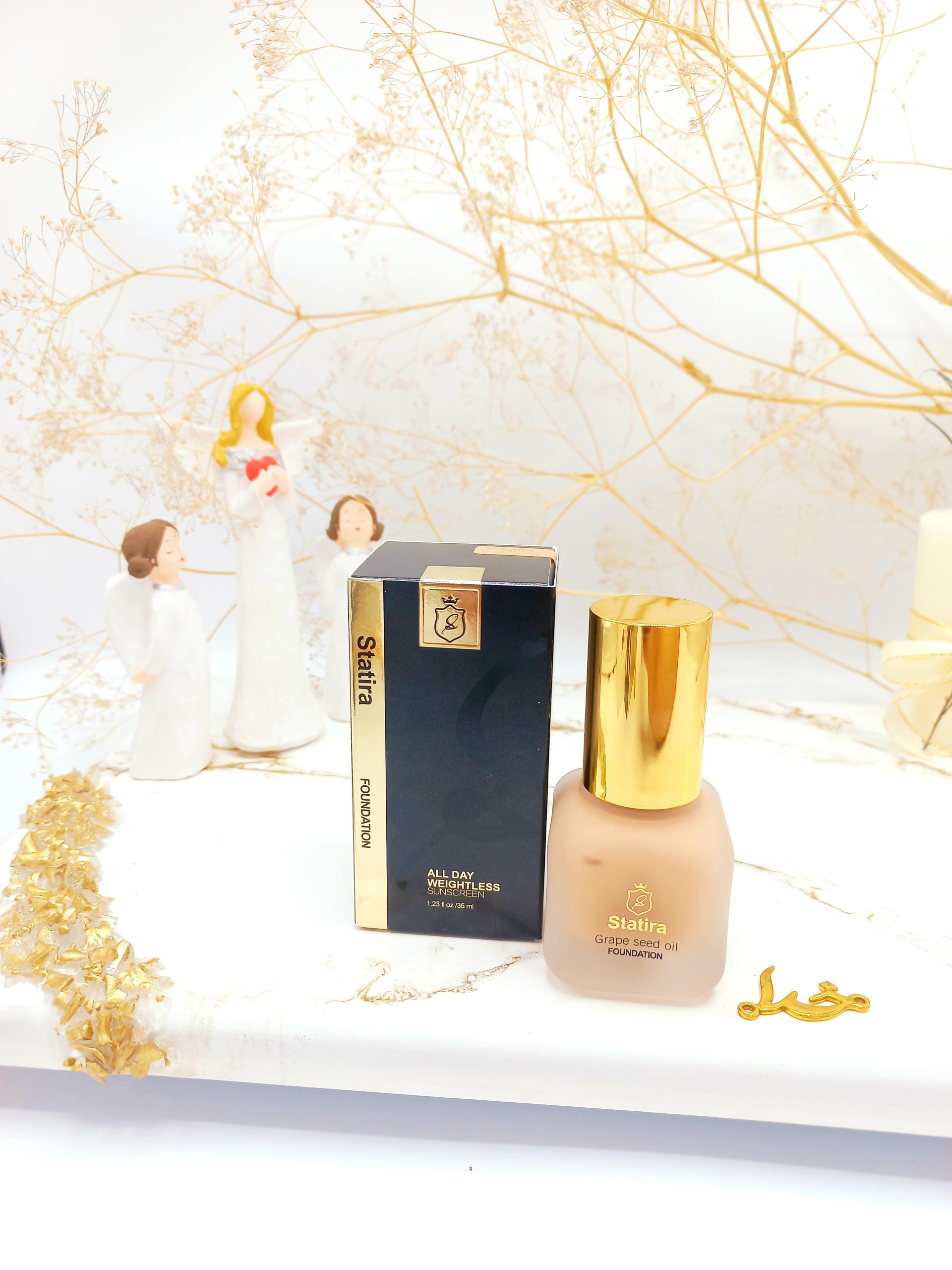 کرم پودر روزانه حاوی ضدآفتاب استاتیرا statira foundation all day در چند رنگ جذاب و مناسب تولید و تهیه شده که پوشش یکدست و ابریشمی به پوست می دهد . این محصول حاوی ضد آفتاب بوده و ماندگاری طولانی داردو دیگر نیازی به ضدآفتاب ندارد جهت تغذیه و نرمی پوست در این محصول ویتامین E استفاده شده است. همچنین به دلیل دارا بودن ویتامین E، رطوبت رسانی بالایی دارد و از پیری پوست جلوگیری می کند. کرم پودر پمپی استاتیرا توسط وزارت بهداشت و درمان تایید شده و برای همه پوست ها مناسب است. این محصول حامی حیوانات بوده وهیچگونه تست حیوانی ندارد.   – تنوع رنگی زیاد – دارای بافت سبک و مات – پوشش‌دهی کامل – پوشش عیوب صورت – ماندگاری طولانی