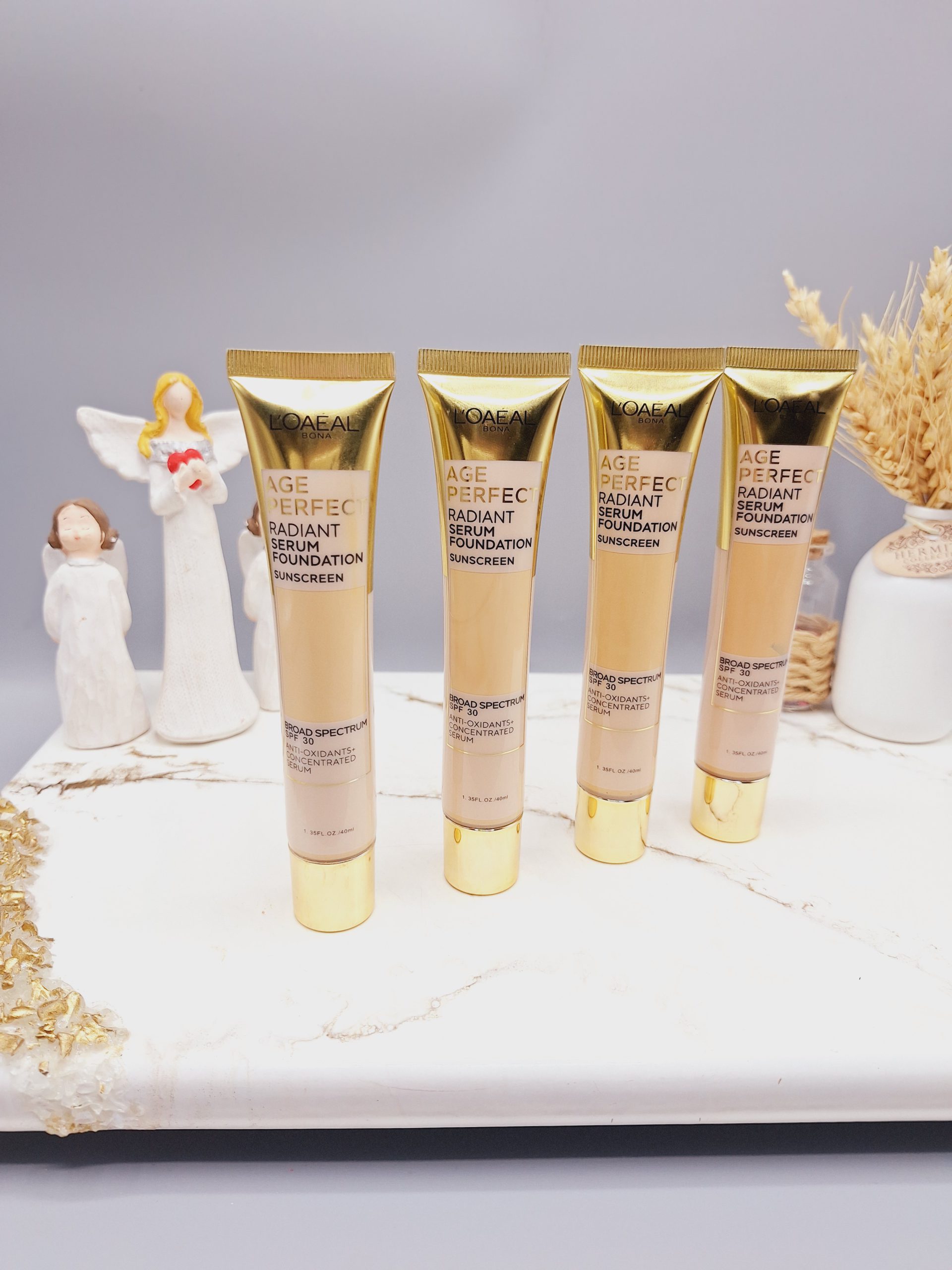 کرم پودر سرمی ضد چروک «Age Perfect» از برند محبوب «لورآل» (Loreal) کرم پودری با ماندگاری بالا می باشد که ضد آب و ضد تبخیر نیز می باشد. روی پوست احساس سبک و راحتی دارد. برق و چربی پوست را می گیرد و پوشش دهی بالایی دارد.فرمولاسیون این کرم پودر با مواد معدنی جاذب چربی غنی شده است و همین باعث شده که از ماسیده شدن و ترک خوردنش روی پوست جلوگیری کند. به دلیل مقاومت بالا در برابر حرارت و رطوبت مدت طولانی بدون تغییر روی پوست باقی میماند. کرم پودر سرمی ضد چروک «Age Perfect» از برند محبوب «لورآل» (Loreal)، یک کرم پودر ومرطوب کننده‌ی قوی برای انواع پوست‌ها می باشد.با این کرم پودر دیگر نگران پوست چروک شده، کدر و خشک خود نباشید؛ کرم پودر ایج پرفکت، ضمن مرطوب کنندگی پوست و بر طرف کردن خشکی پوست، تقویت کننده‌ی بسیار خوبی نیز است. این کرم پودر حاوی ترکیبات ضد چروک، ضد لک و دارای Spf 50 است.این ترکیبات عالی، از افتادگی و خشکی پوست جلوگیری کرده و لک‌ها را هم از بین خواهد برد.این کرم با داشتن Spf 50 پوست شما را در برابر اشعه های مضر آفتاب محافظت میکند.