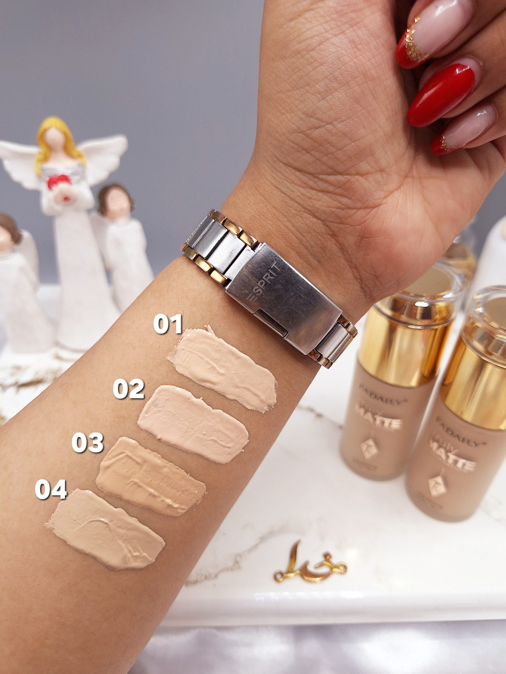 کرم پودر مات MATTE برند FADAILY کد FA1001 درب طلایی با پوشانندگی بالا روی پوست ظاهری مات و طبیعی ایجاد میکند. این محصول به دلیل کاور بسیار بالایی که دارد برای پوشاندن هر نوع لک، جوش و ناهماهنگی روی پوست طرفداران بسیاری دارد. کرم پودر اینلی مقاومت بالایی داشته و با تعریق و آب به راحتی از روی پوست پاک نمیشود. بافت نرم و مخملی آن به گونهای طراحی دشه است تا روی پوست به خوبی قرار گیرد و حس سنگینی یا چرب شدن ایجاد نکند. این محصول برای انواع پوست مناسب بوده و علاوه بر رطوبت رسانی مناسب موجب ایجاد جوش نمیشود.