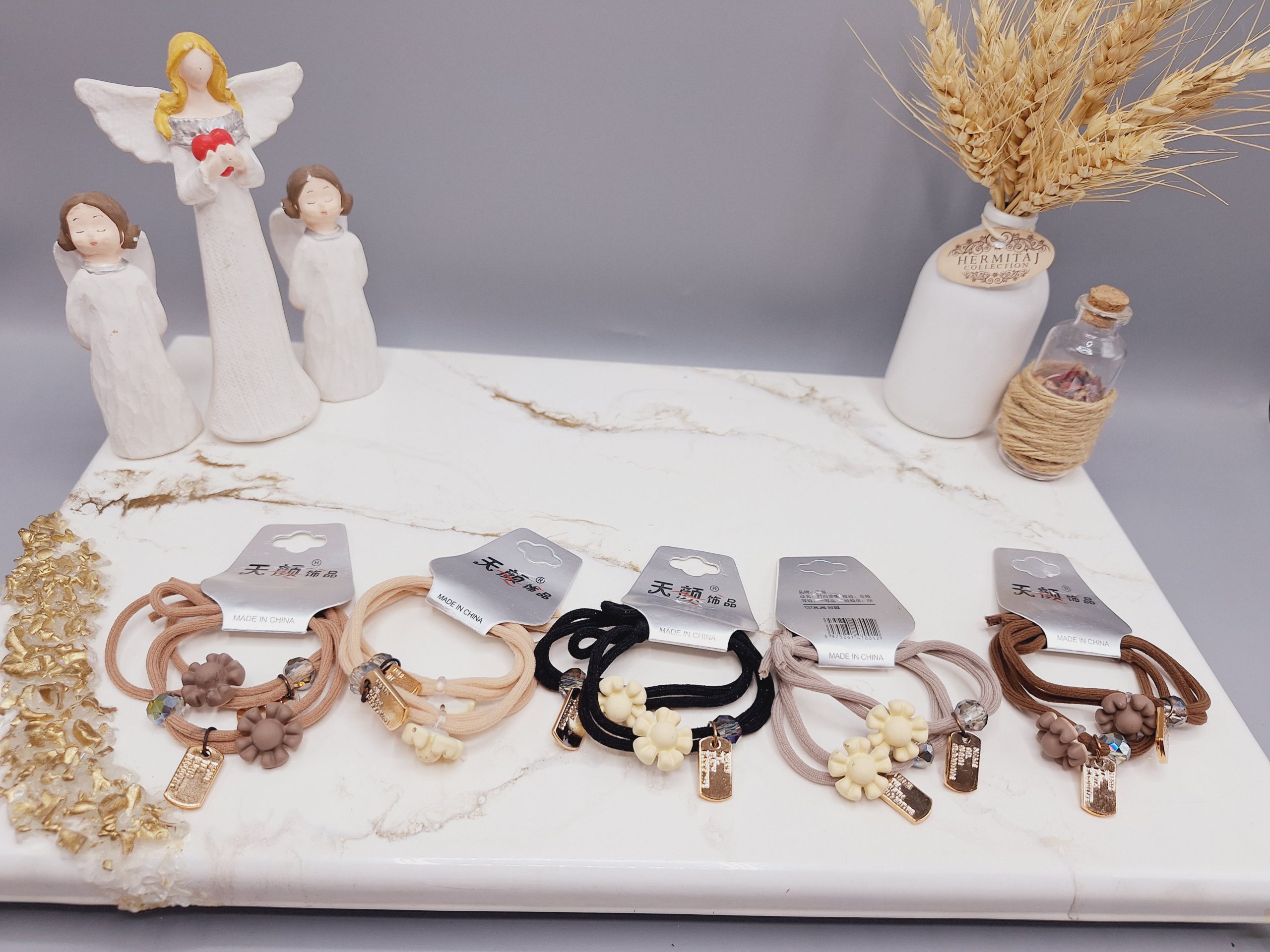 کش مو 2 تایی طرح گل و مروارید و اتیکت کد 0012 رندم
